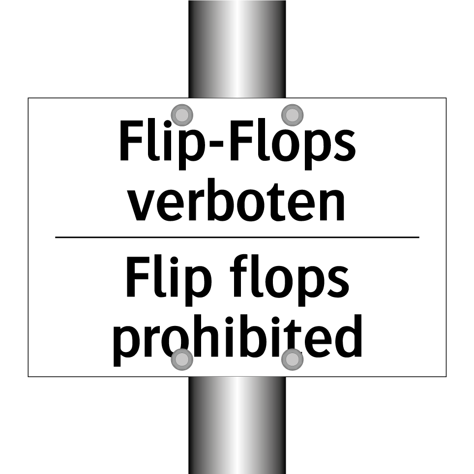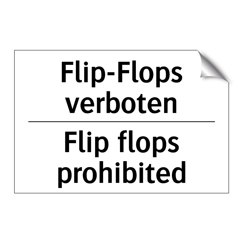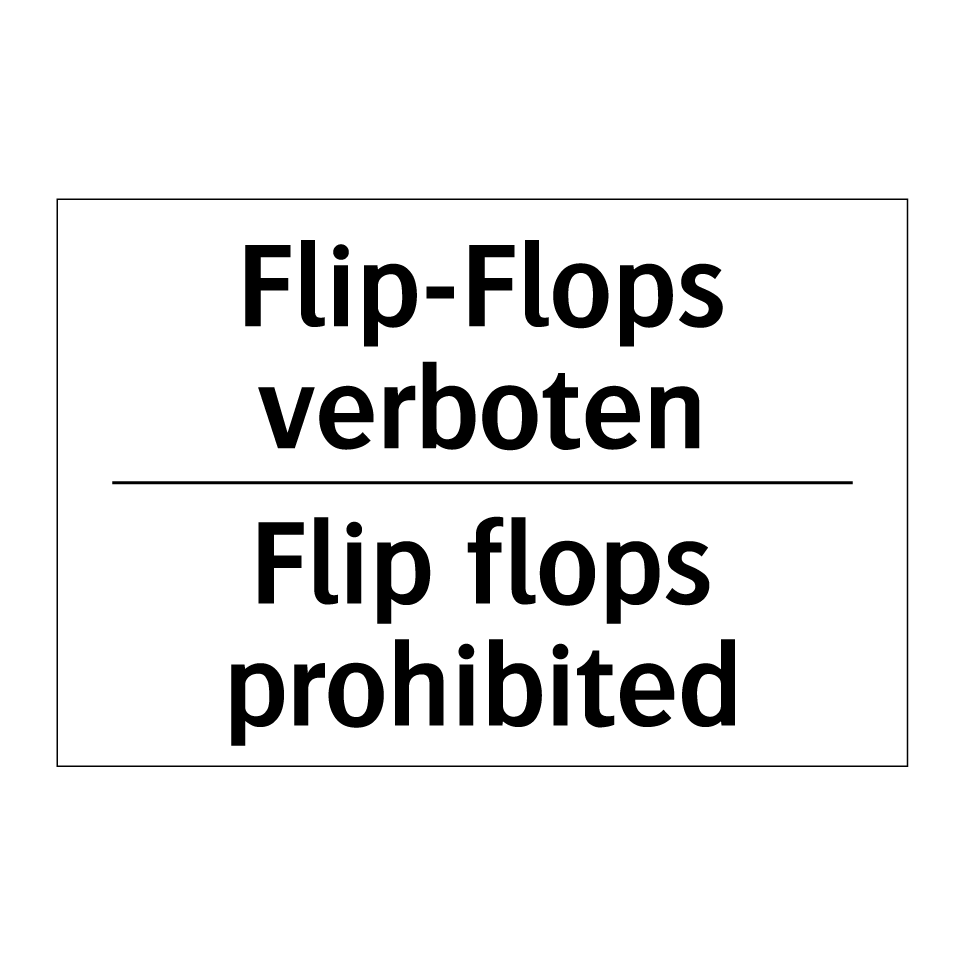 Zweisprachiges Verbotsschild mit deutschem Text Flip-Flops verboten und englischem Text Flip flops prohibited