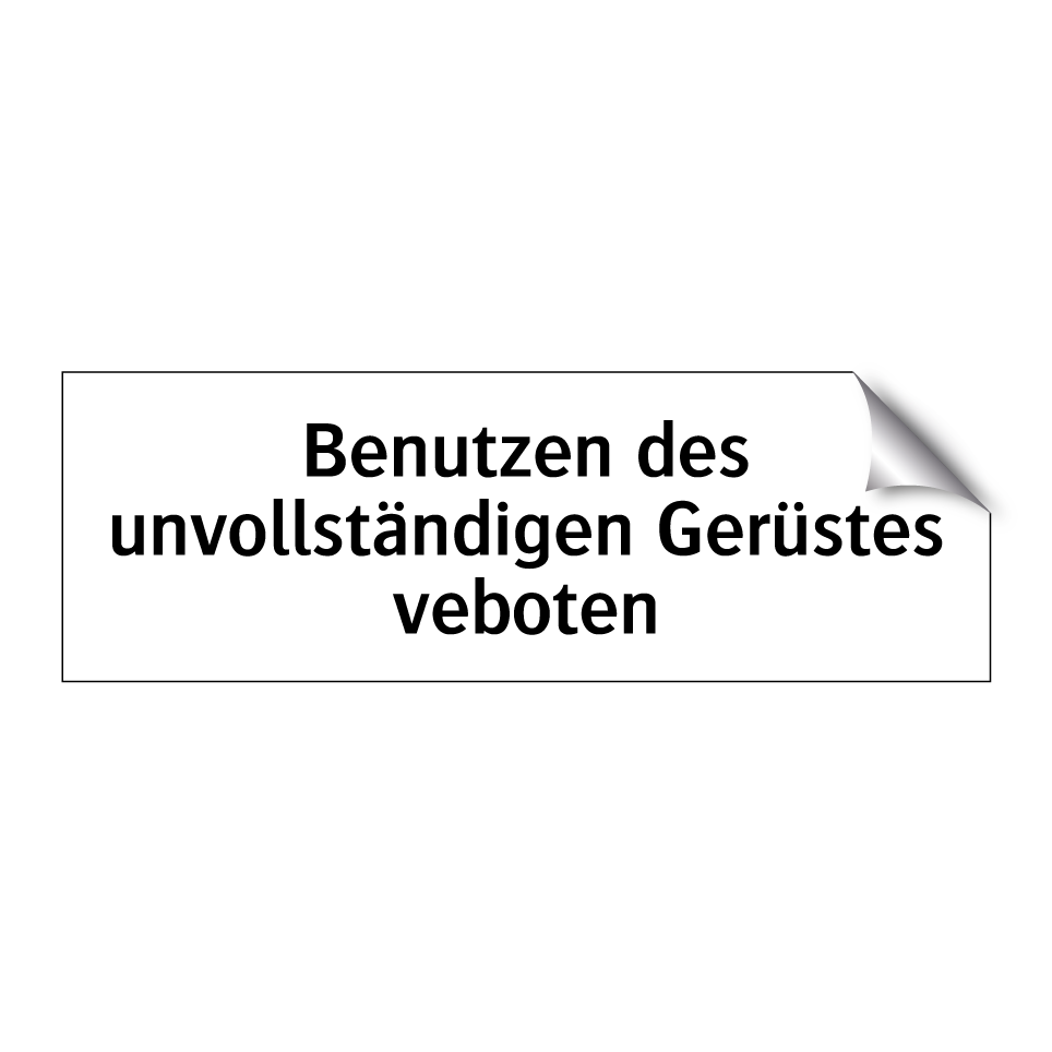 Verbotsschild mit dem Text Benutzen des unvollständigen Gerüstes veboten