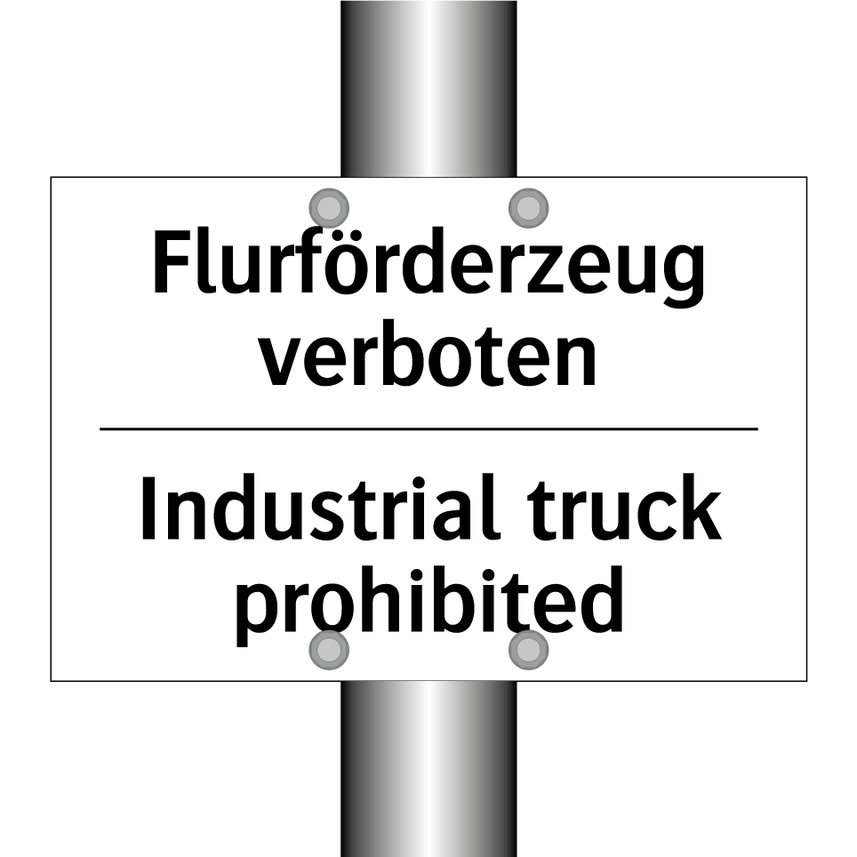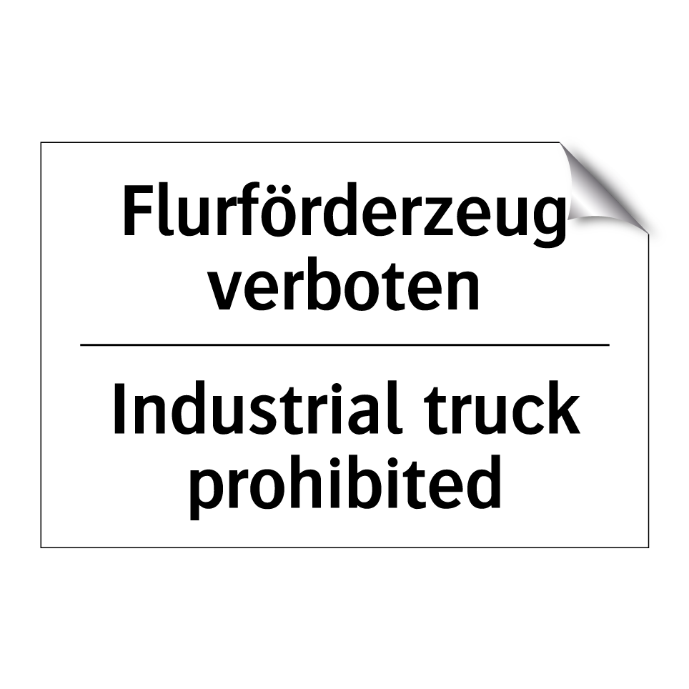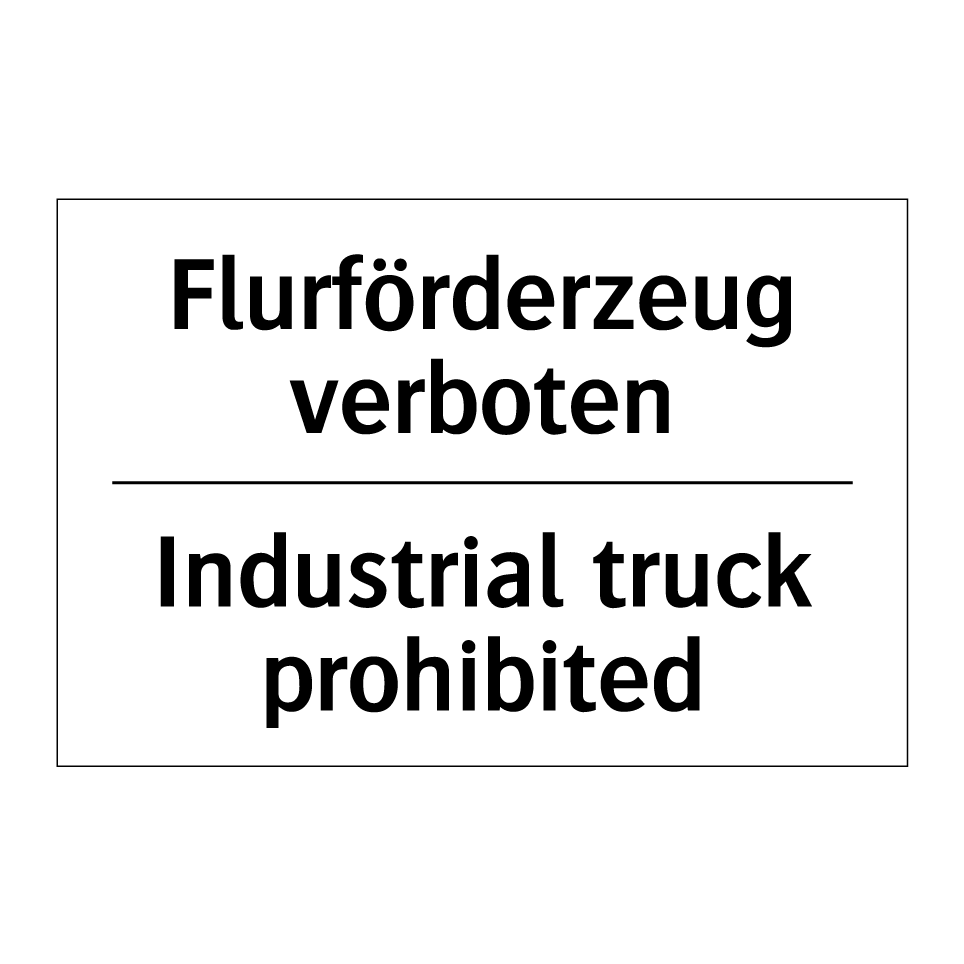 Zweisprachiges Verbotsschild mit deutschem Text Flurförderzeug verboten und englischem Text Industrial truck prohibited