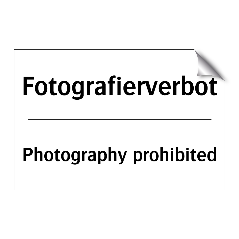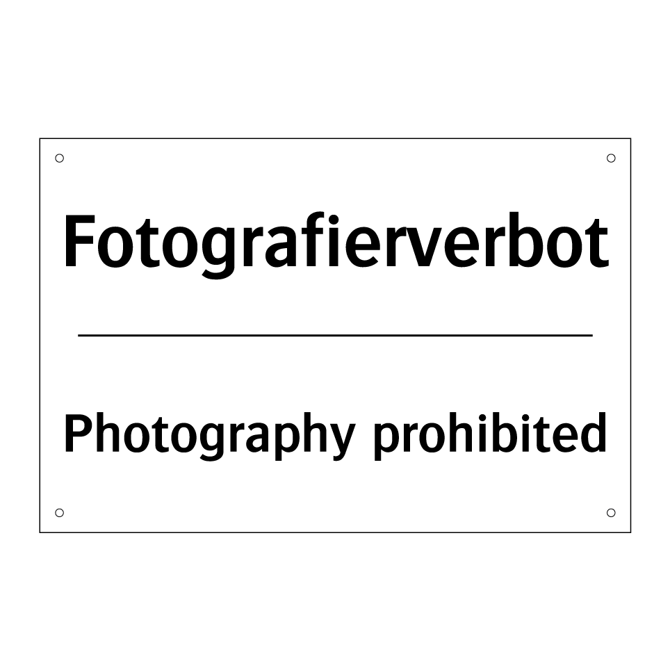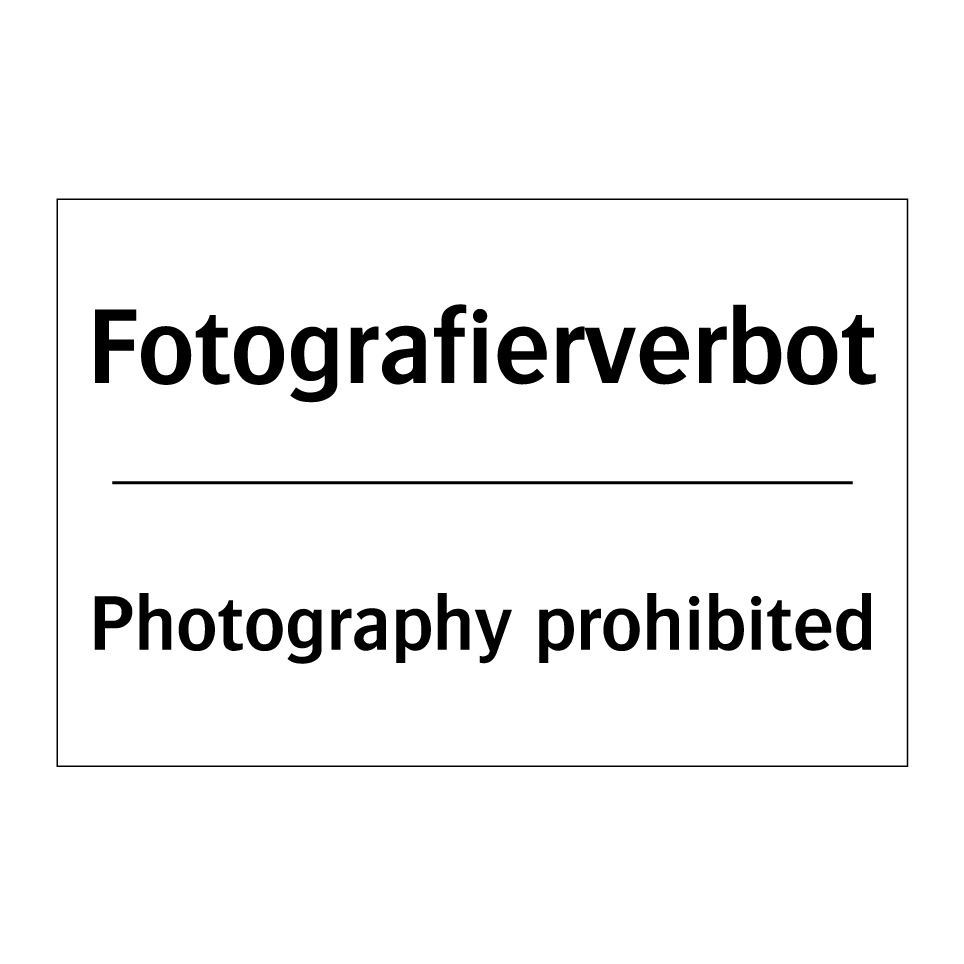 Zweisprachiges Verbotsschild mit deutschem Text Fotografierverbot und englischem Text Photography prohibited