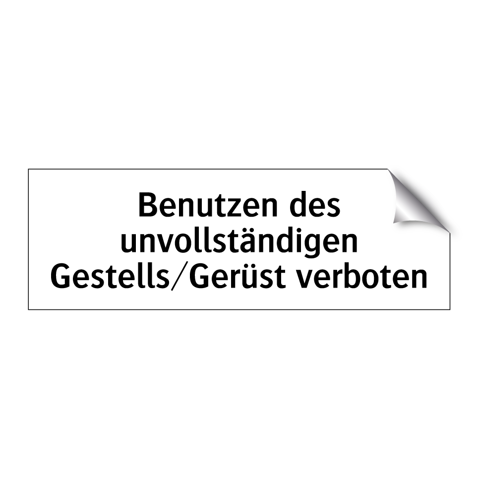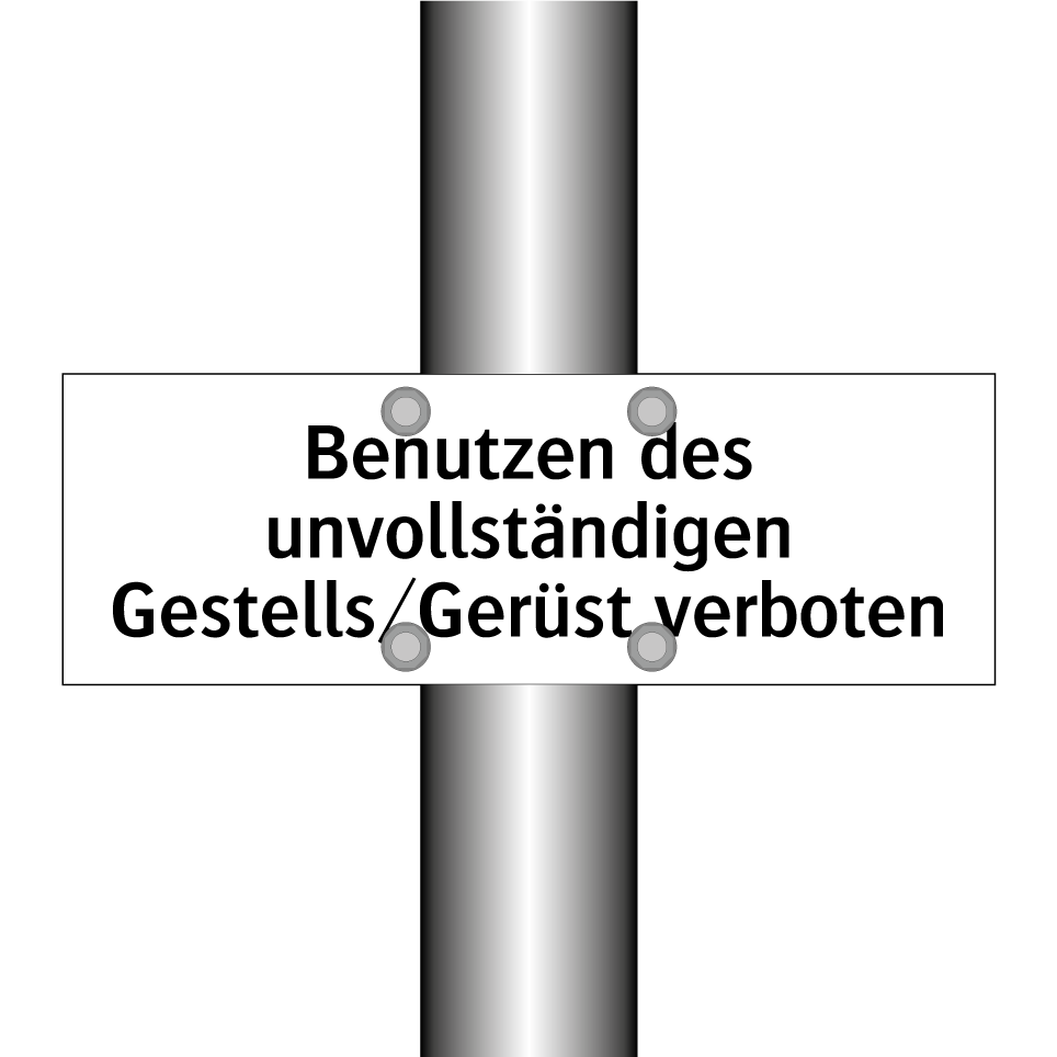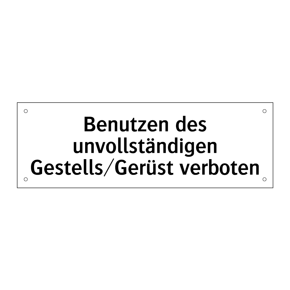 Verbotsschild mit dem Text Benutzen des unvollständigen Gestells/Gerüst verboten