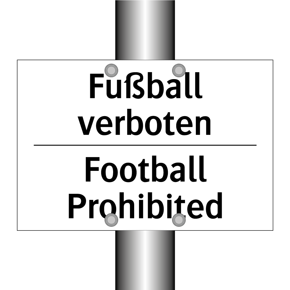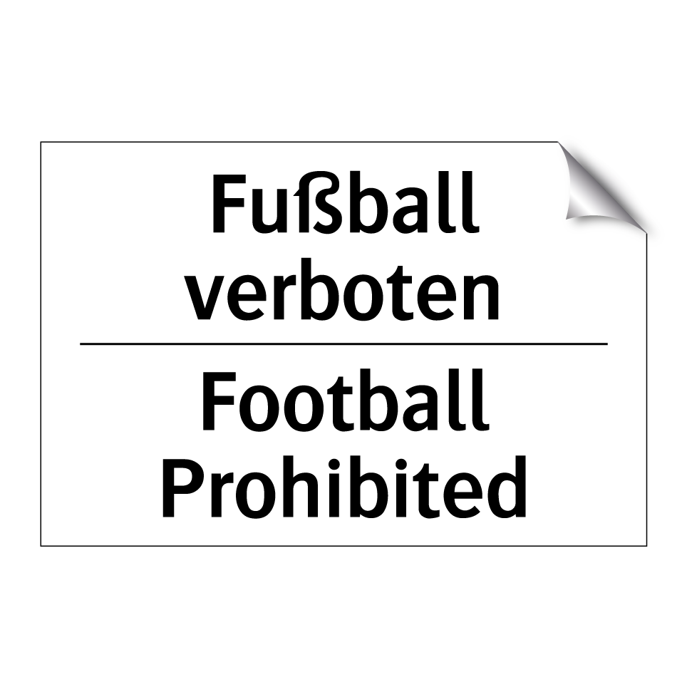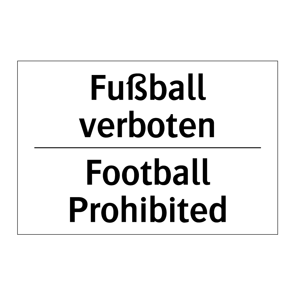 Zweisprachiges Verbotsschild mit deutschem Text Fußball verboten und englischem Text Football Prohibited