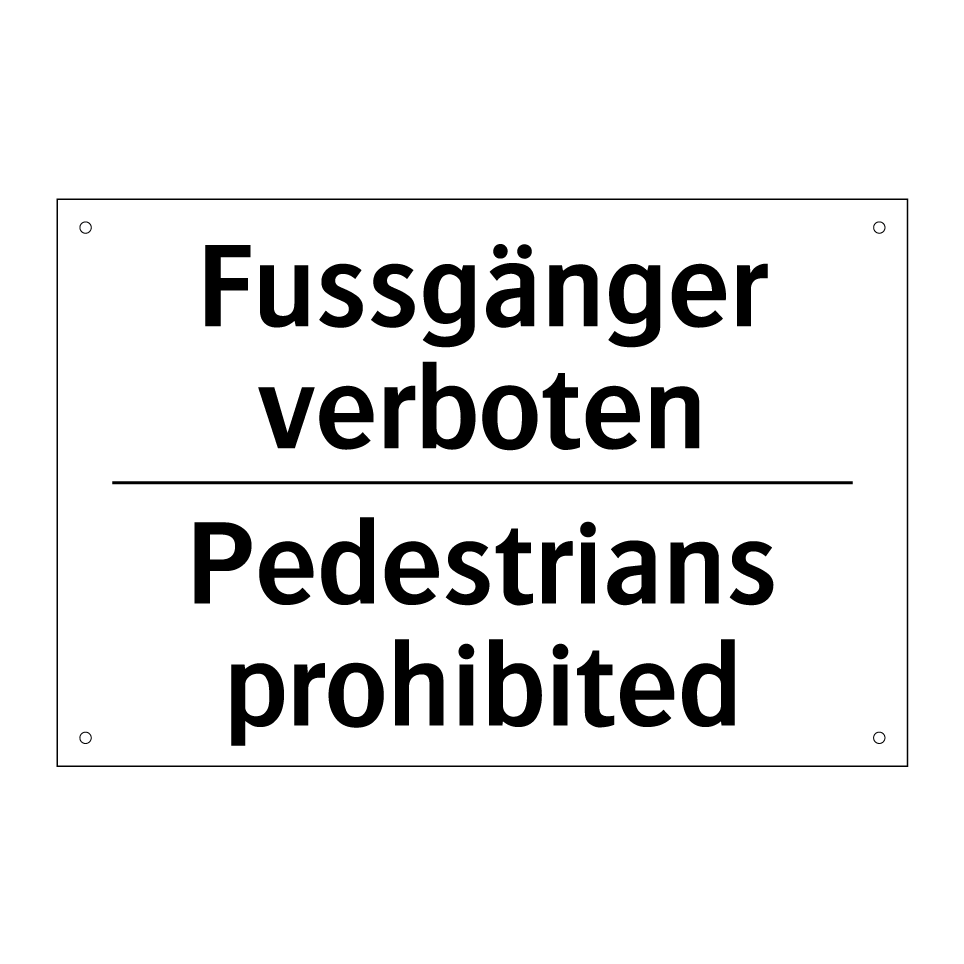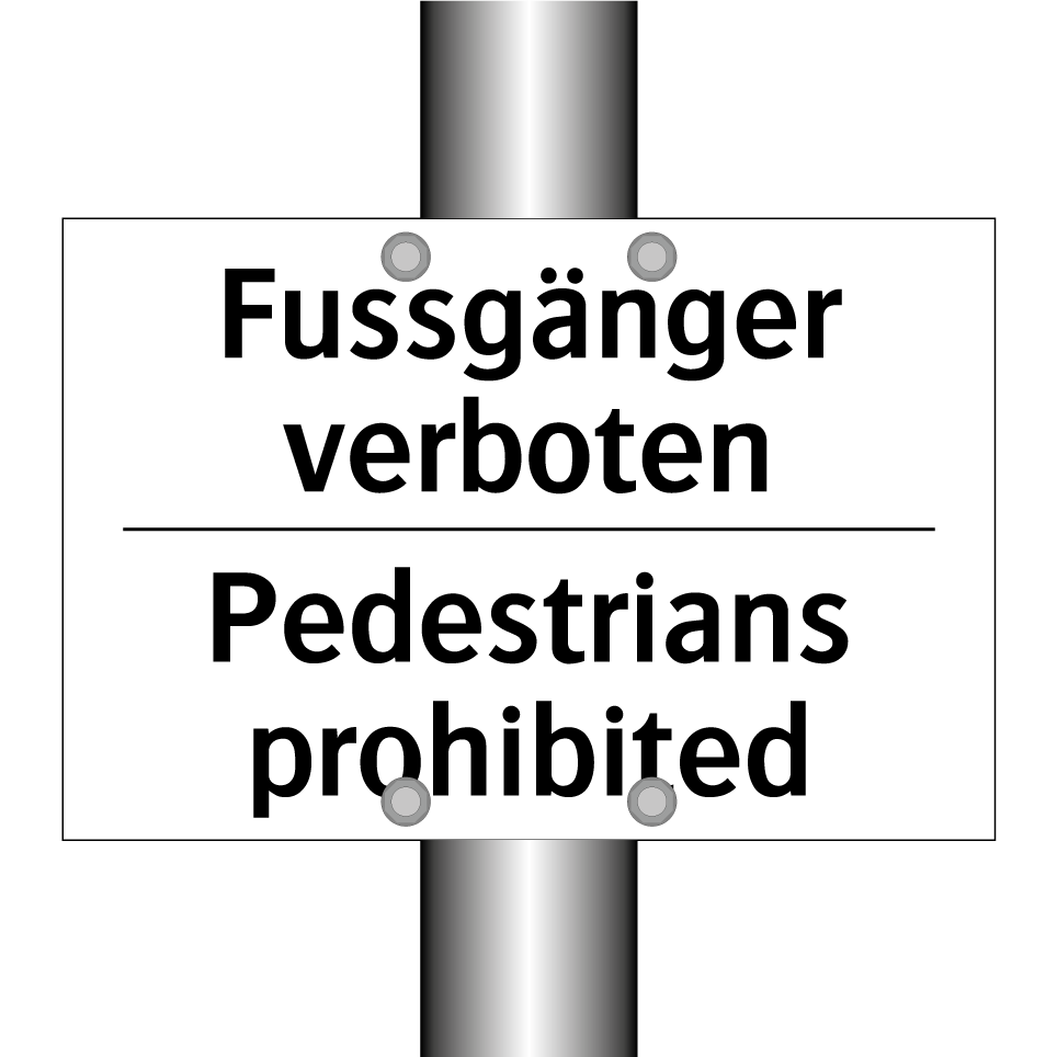 Zweisprachiges Verbotsschild mit deutschem Text Fussgänger verboten und englischem Text Pedestrians prohibited
