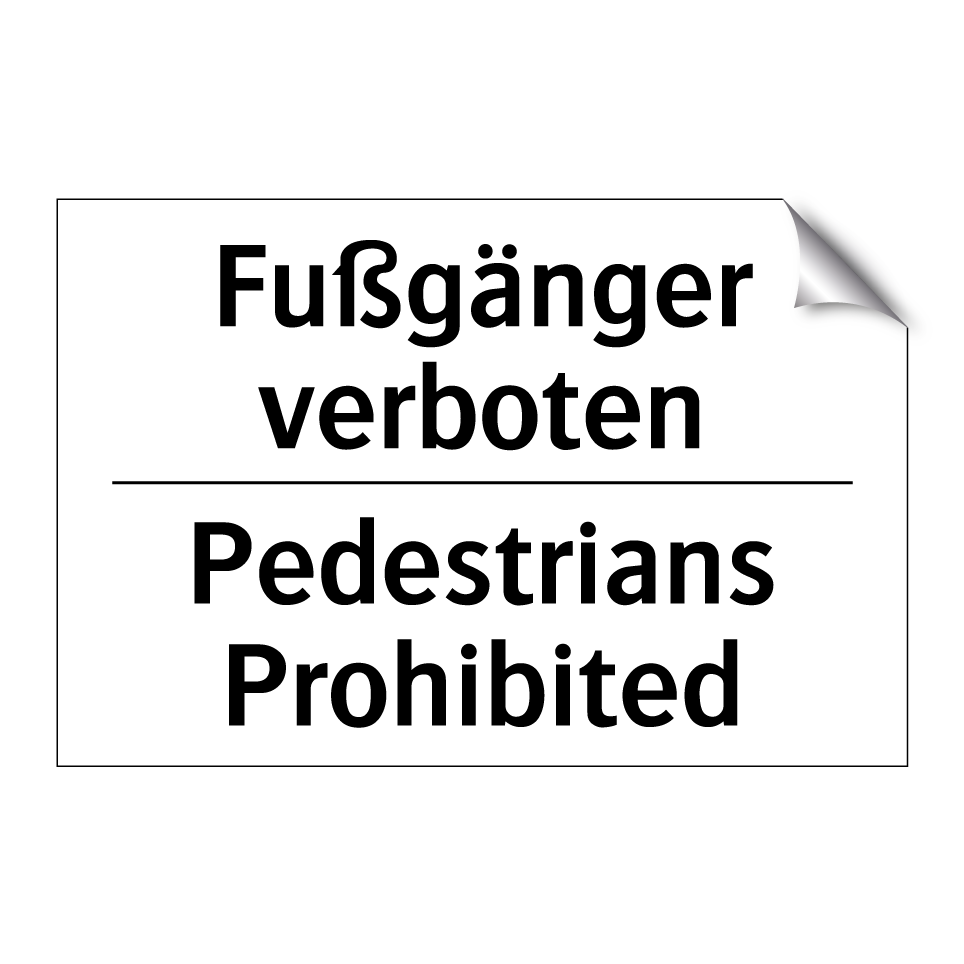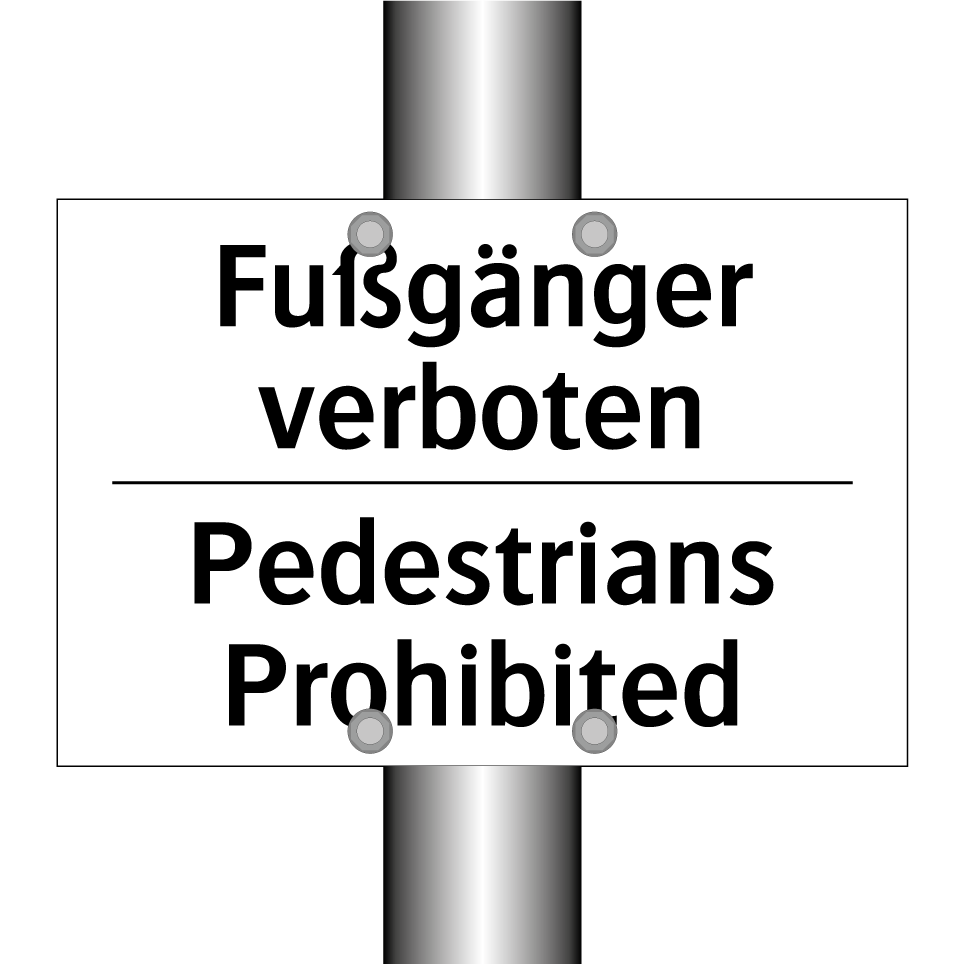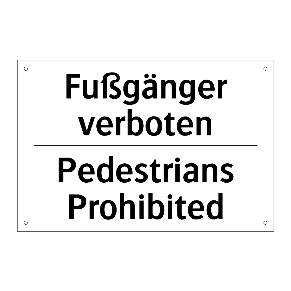 Zweisprachiges Verbotsschild mit deutschem Text Fußgänger verboten und englischem Text Pedestrians Prohibited