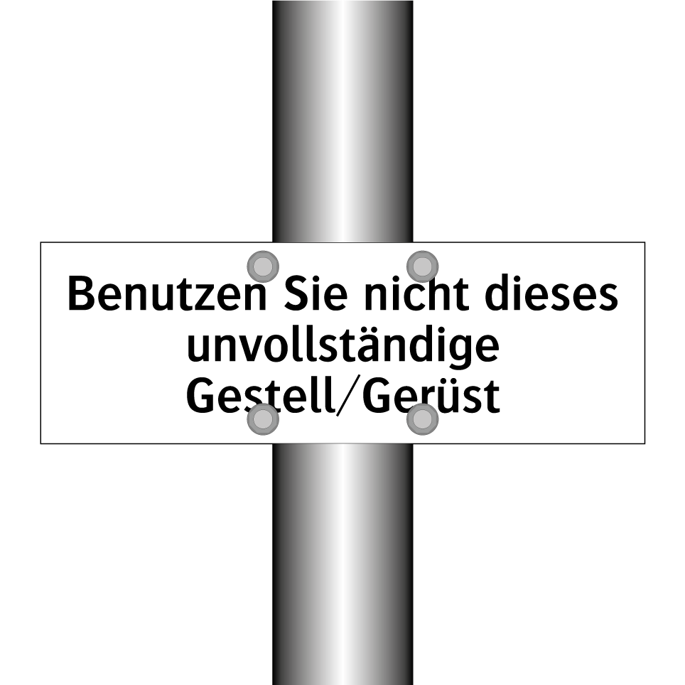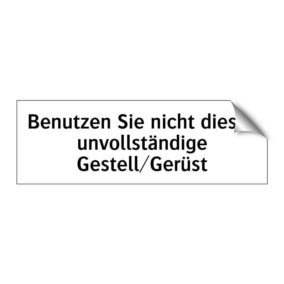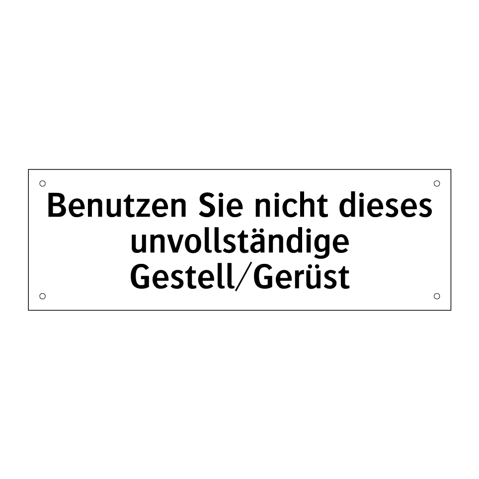 Verbotsschild mit dem Text Benutzen Sie nicht dieses unvollständige Gestell/Gerüst