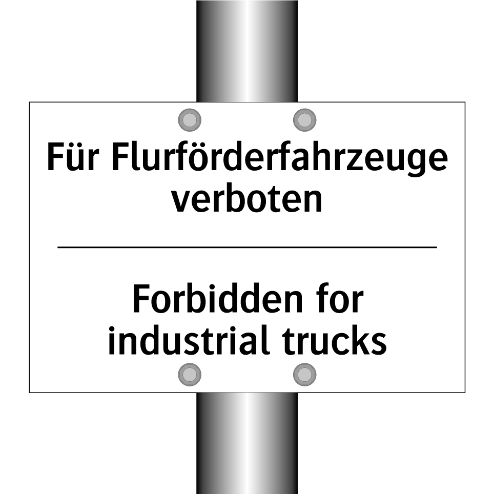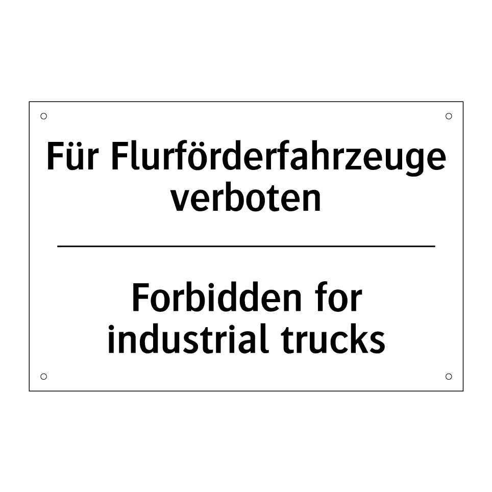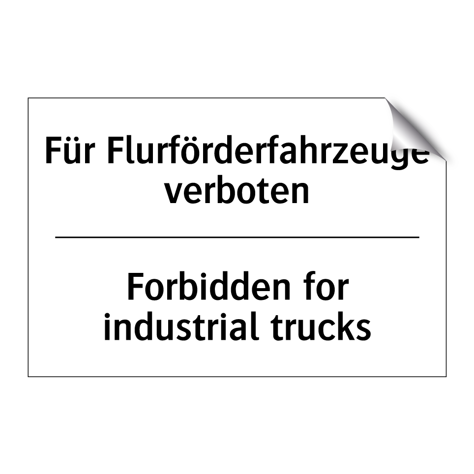 Zweisprachiges Verbotsschild mit deutschem Text Für Flurförderfahrzeuge verboten und englischem Text Forbidden for industrial trucks