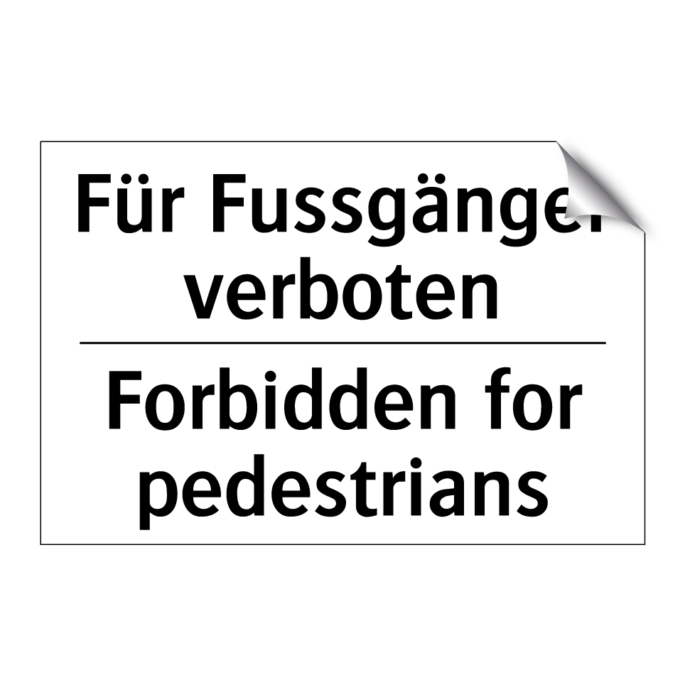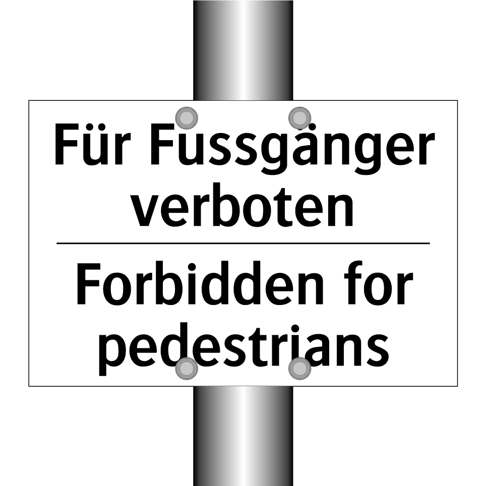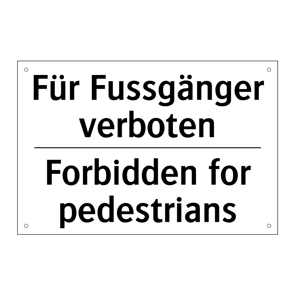 Zweisprachiges Verbotsschild mit deutschem Text Für Fussgänger verboten und englischem Text Forbidden for pedestrians