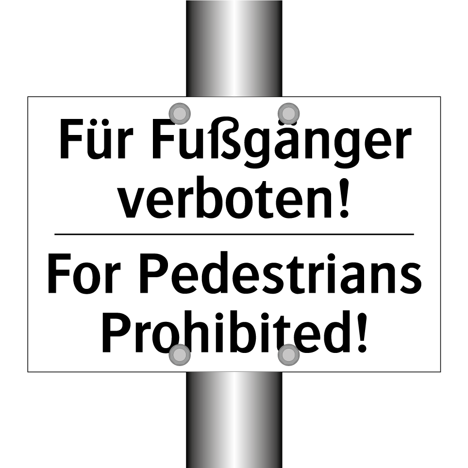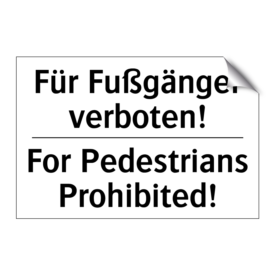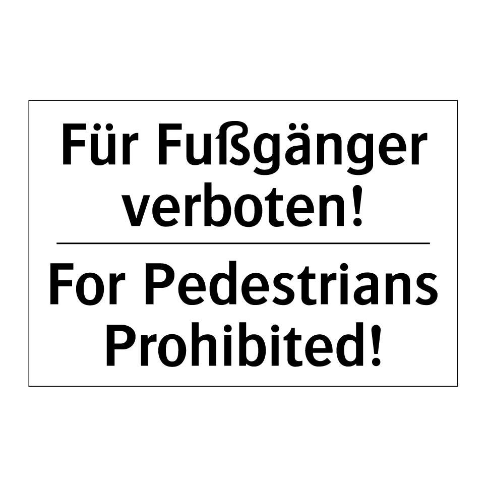 Zweisprachiges Verbotsschild mit deutschem Text Für Fußgänger verboten! und englischem Text For Pedestrians Prohibited!