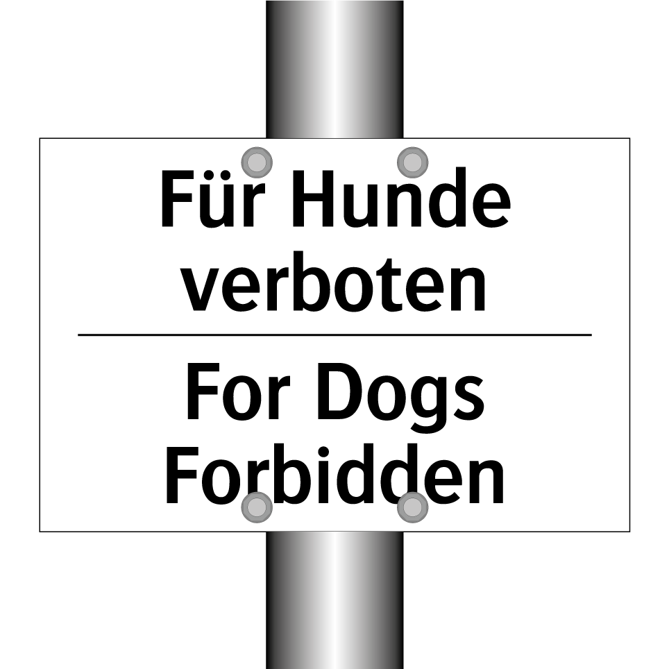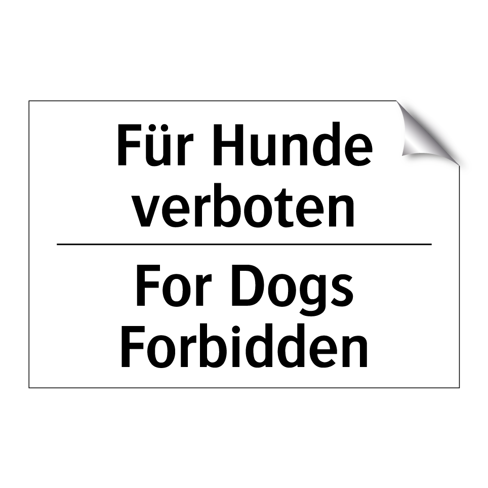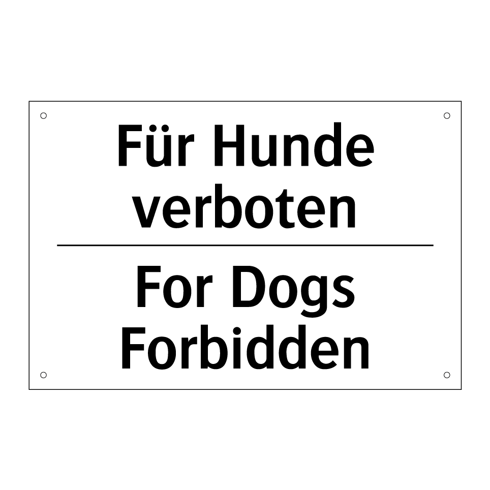 Zweisprachiges Verbotsschild mit deutschem Text Für Hunde verboten und englischem Text For Dogs Forbidden