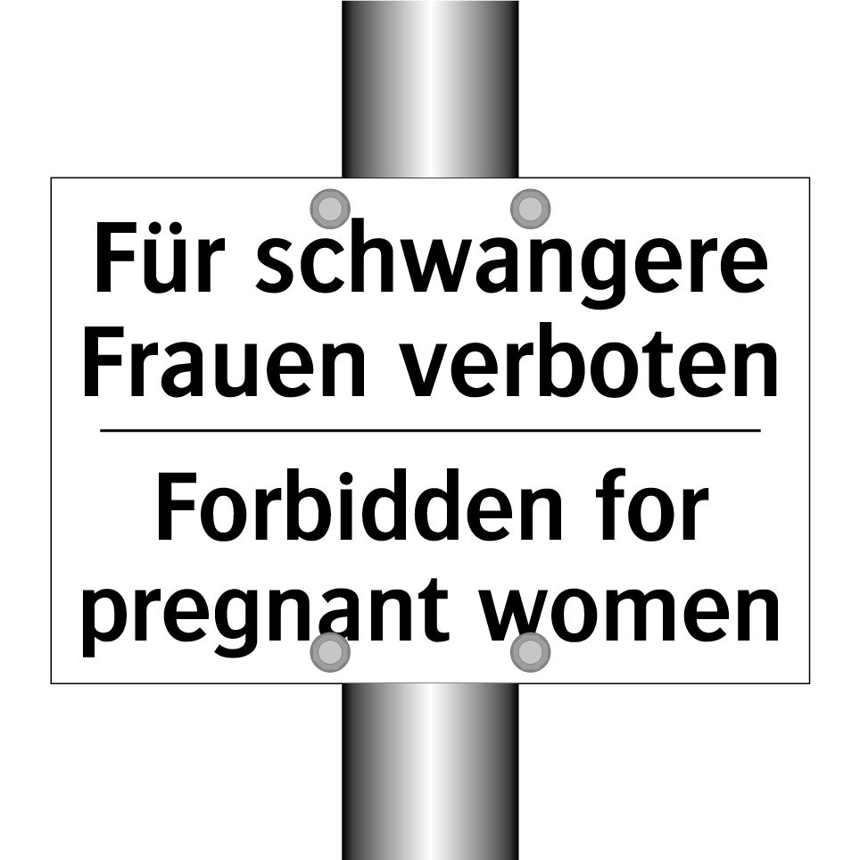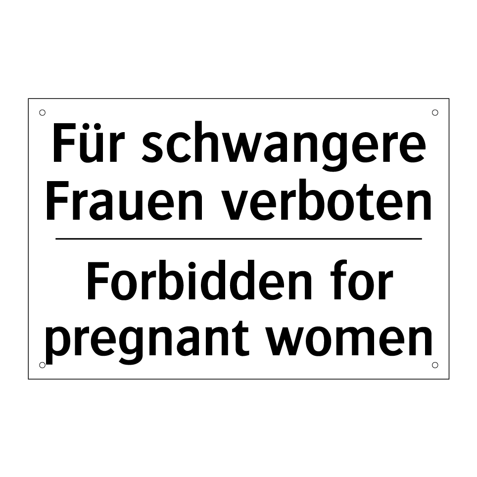 Zweisprachiges Verbotsschild mit deutschem Text Für schwangere Frauen verboten und englischem Text Forbidden for pregnant women