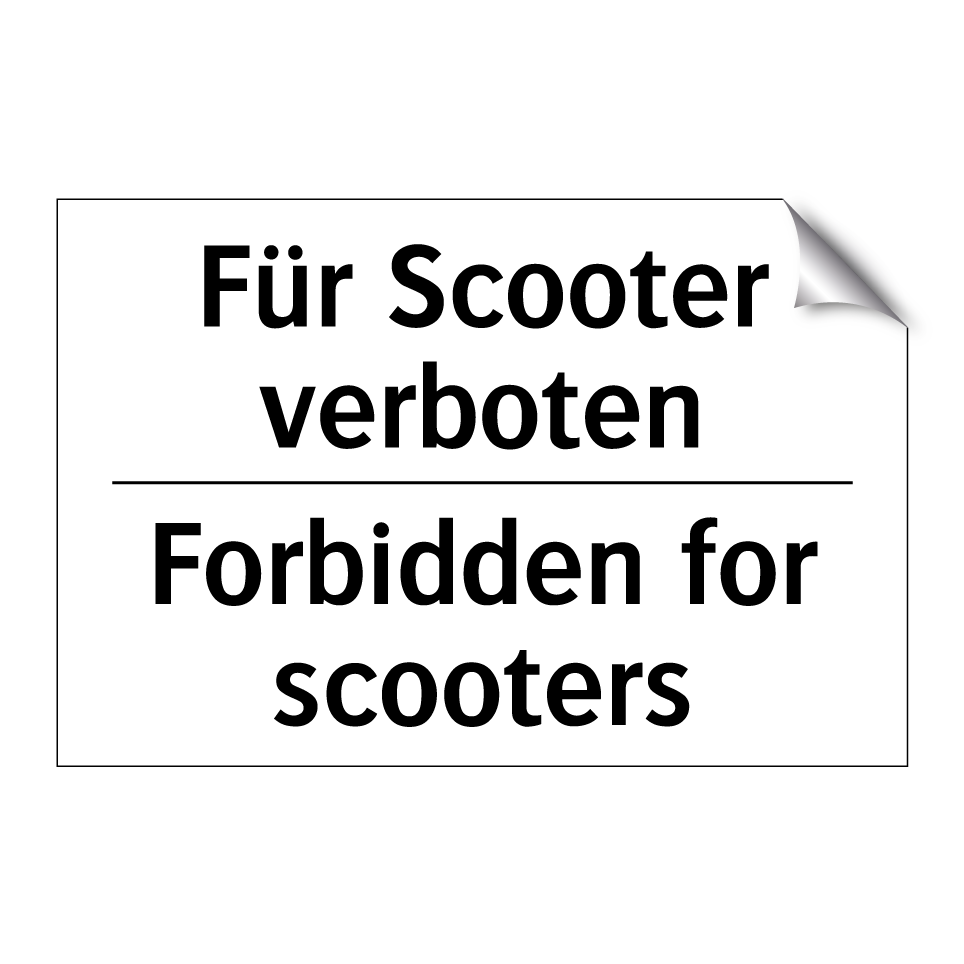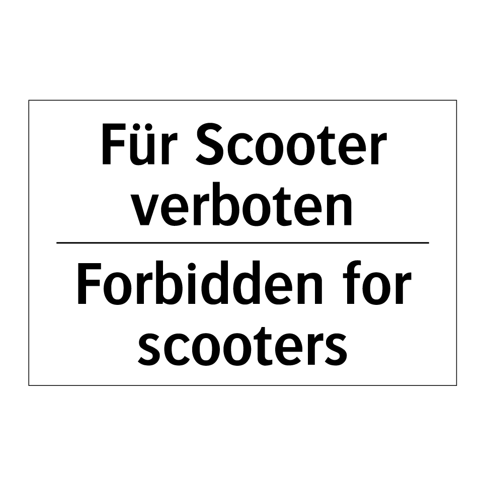 Zweisprachiges Verbotsschild mit deutschem Text Für Scooter verboten und englischem Text Forbidden for scooters