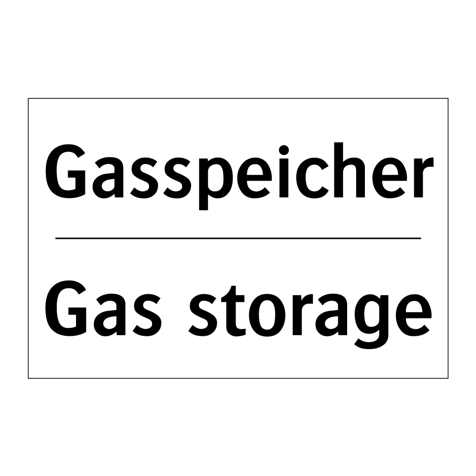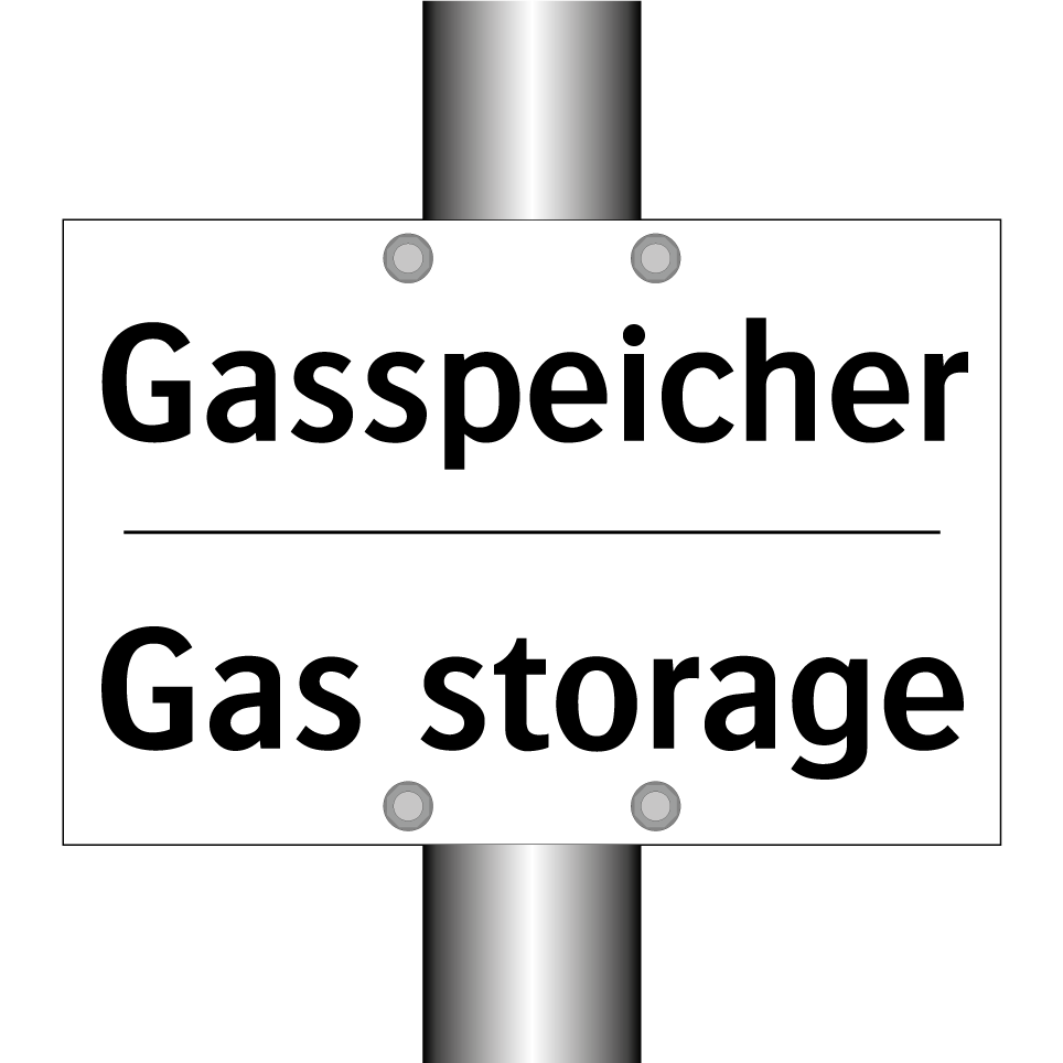 Zweisprachiges Verbotsschild mit deutschem Text Gasspeicher und englischem Text Gas storage