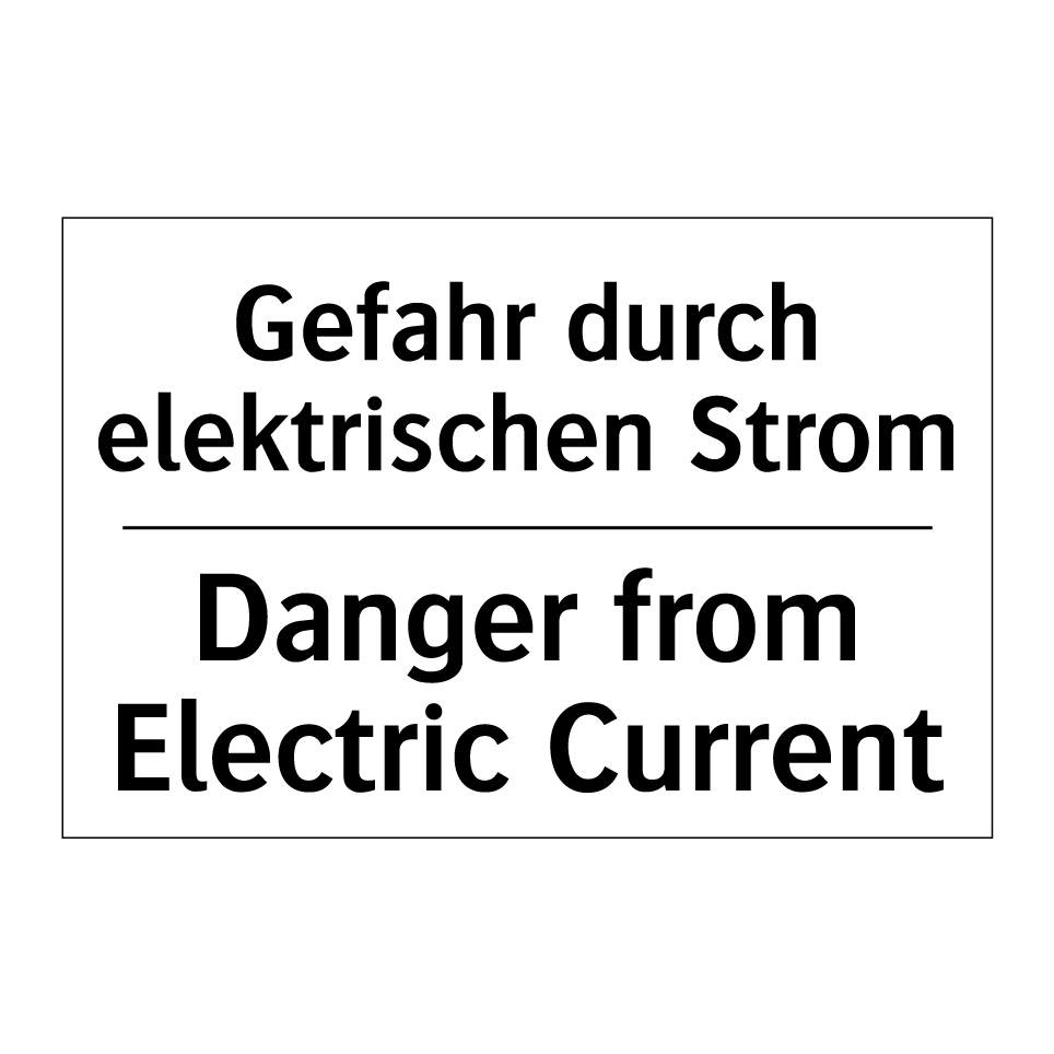 Zweisprachiges Verbotsschild mit deutschem Text Gefahr durch elektrischen Strom und englischem Text Danger from Electric Current
