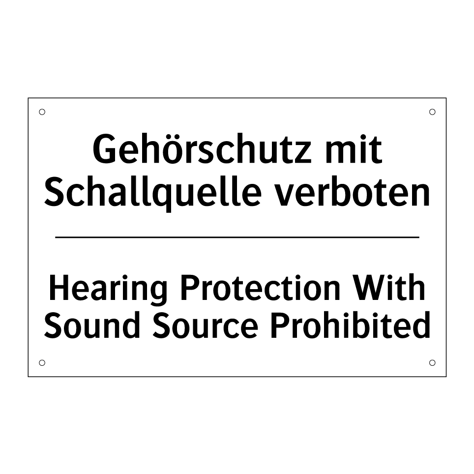Zweisprachiges Verbotsschild mit deutschem Text Gehörschutz mit Schallquelle verboten und englischem Text Hearing Protection With Sound Source Prohibited