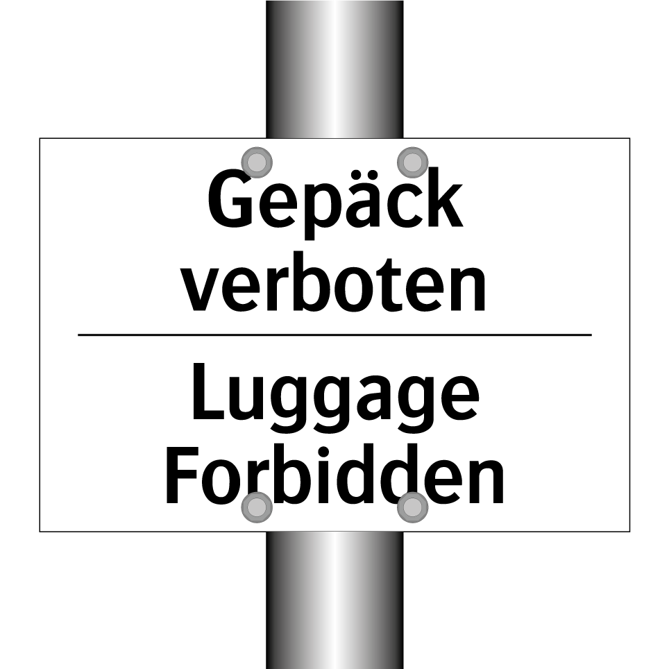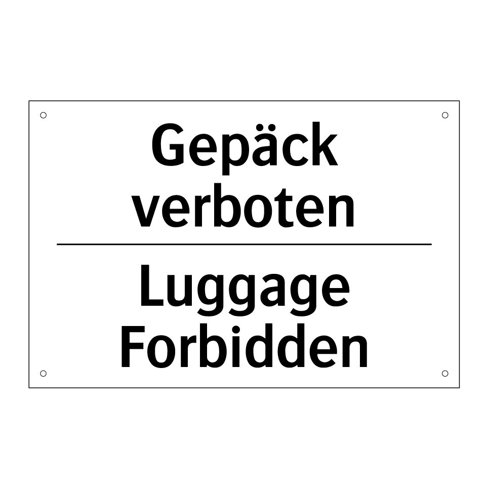 Zweisprachiges Verbotsschild mit deutschem Text Gepäck verboten und englischem Text Luggage Forbidden
