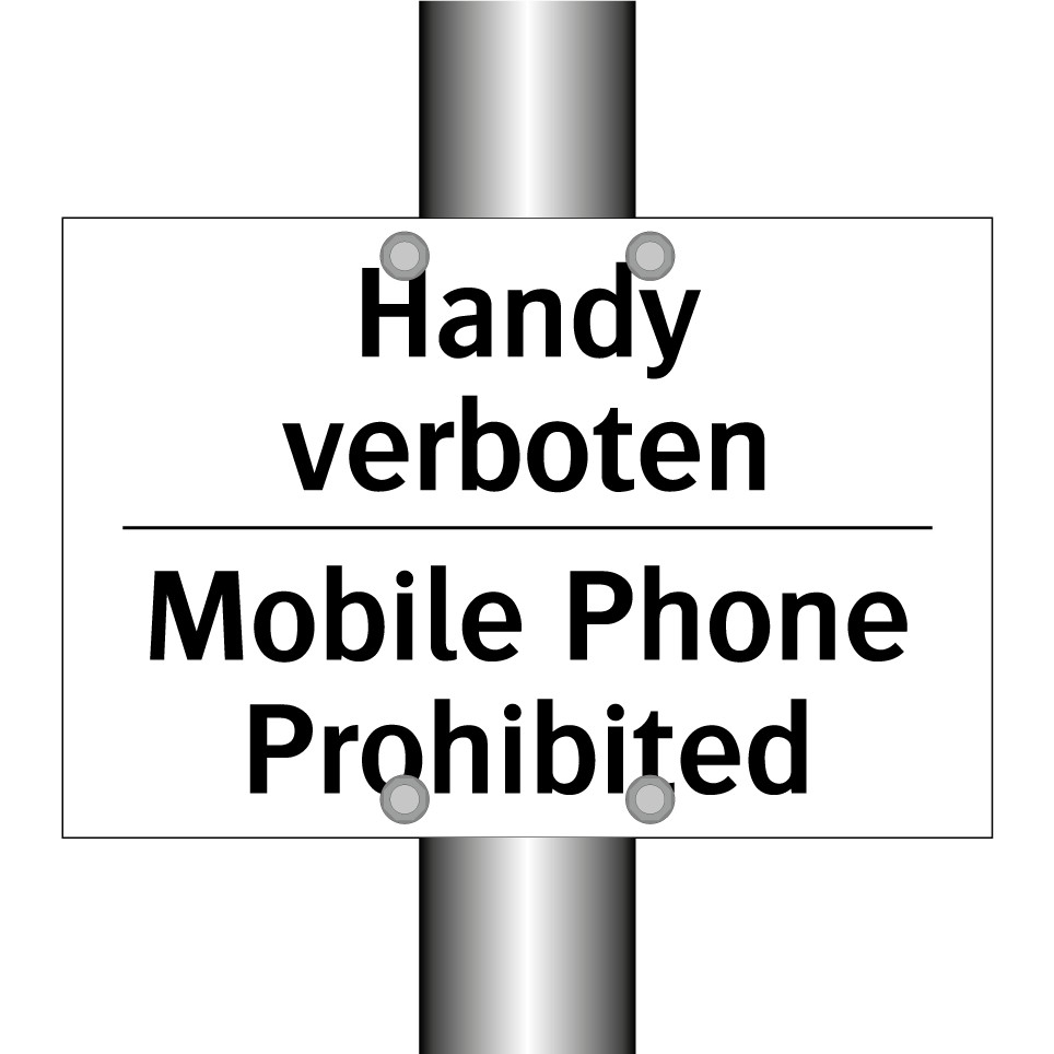 Zweisprachiges Verbotsschild mit deutschem Text Handy verboten und englischem Text Mobile Phone Prohibited