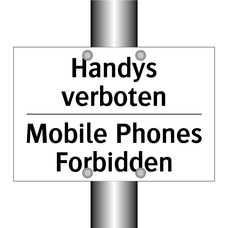 Zweisprachiges Verbotsschild mit deutschem Text Handys verboten und englischem Text Mobile Phones Forbidden