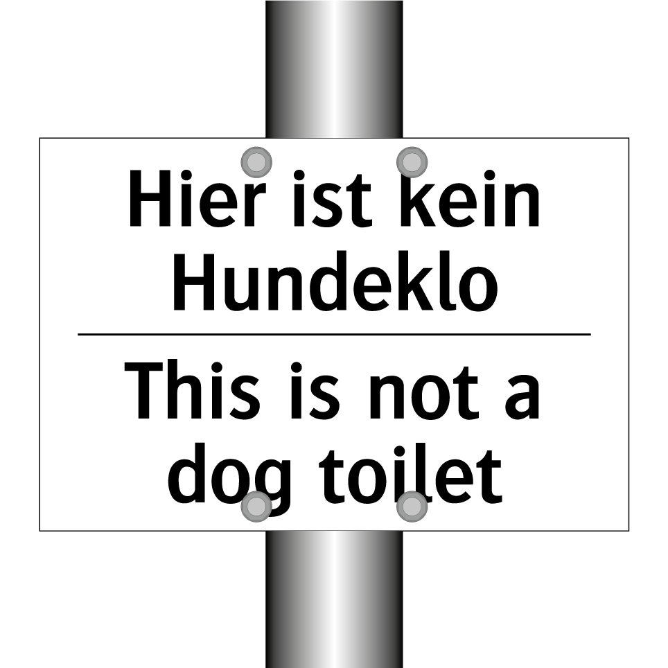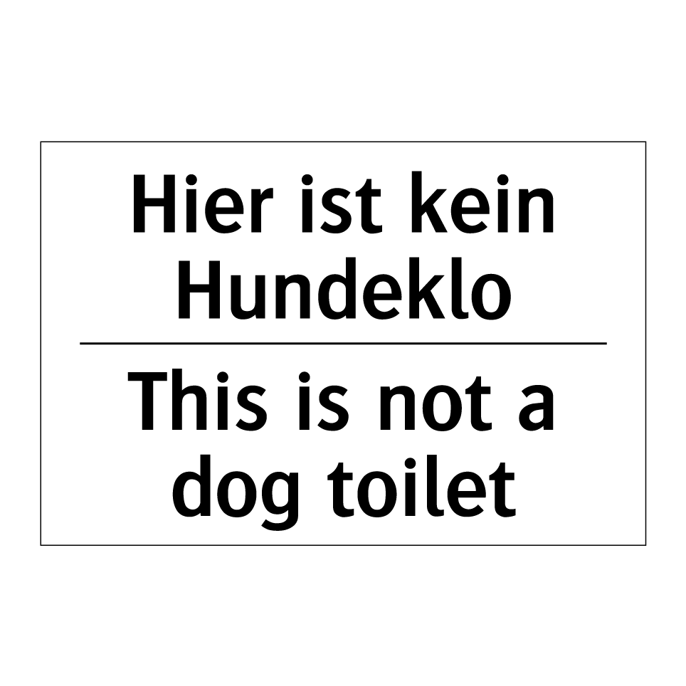 Zweisprachiges Verbotsschild mit deutschem Text Hier ist kein Hundeklo und englischem Text This is not a dog toilet