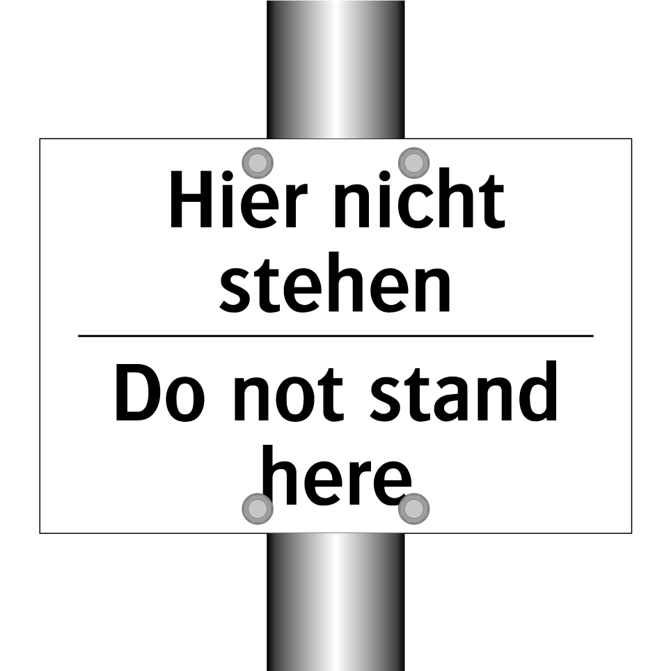 Zweisprachiges Verbotsschild mit deutschem Text Hier nicht stehen und englischem Text Do not stand here