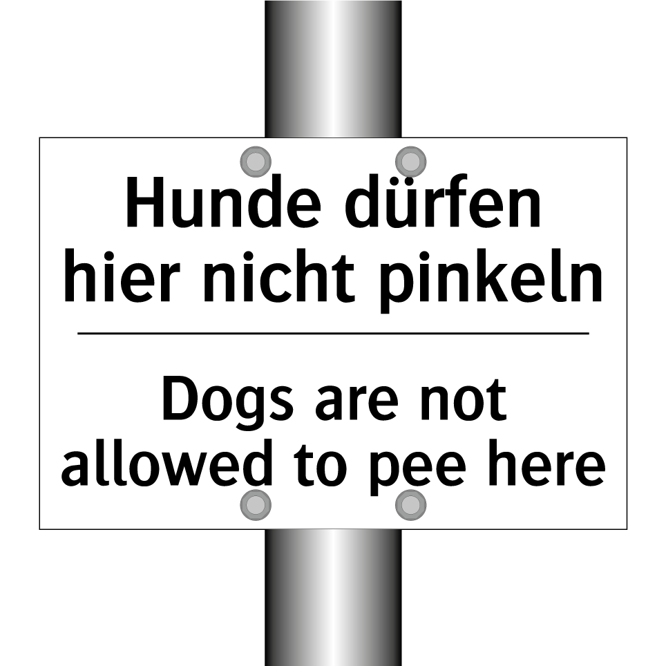 Zweisprachiges Verbotsschild mit deutschem Text Hunde dürfen hier nicht pinkeln und englischem Text Dogs are not allowed to pee here
