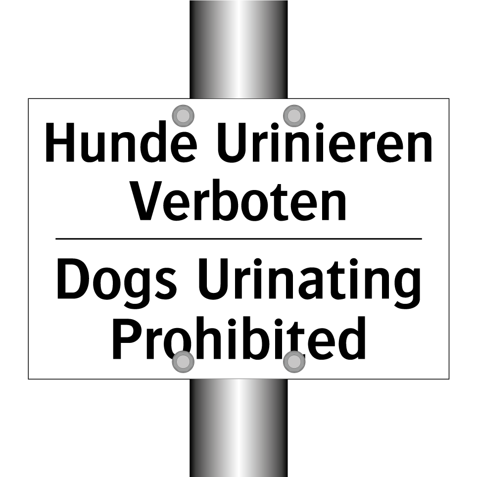 Zweisprachiges Verbotsschild mit deutschem Text Hunde Urinieren Verboten und englischem Text Dogs Urinating Prohibited