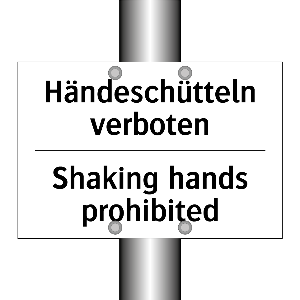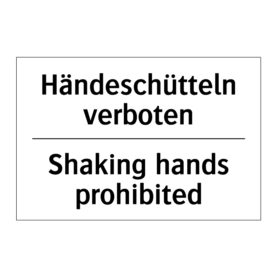 Zweisprachiges Verbotsschild mit deutschem Text Händeschütteln verboten und englischem Text Shaking hands prohibited
