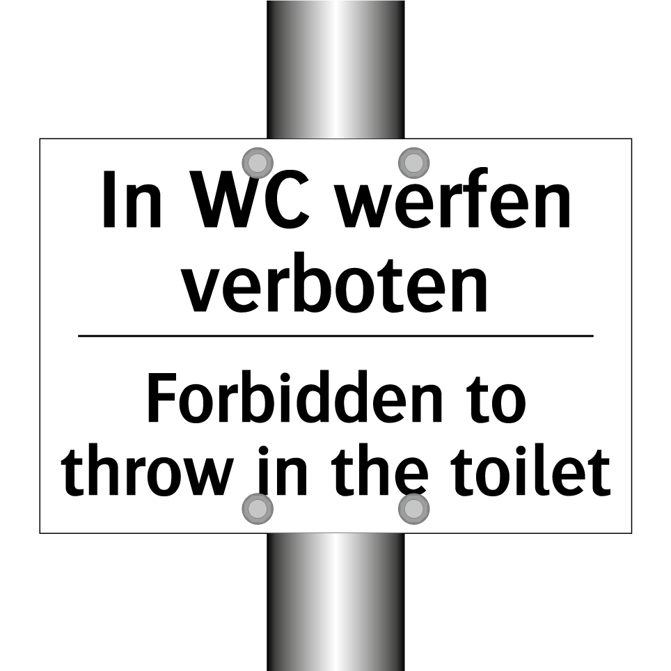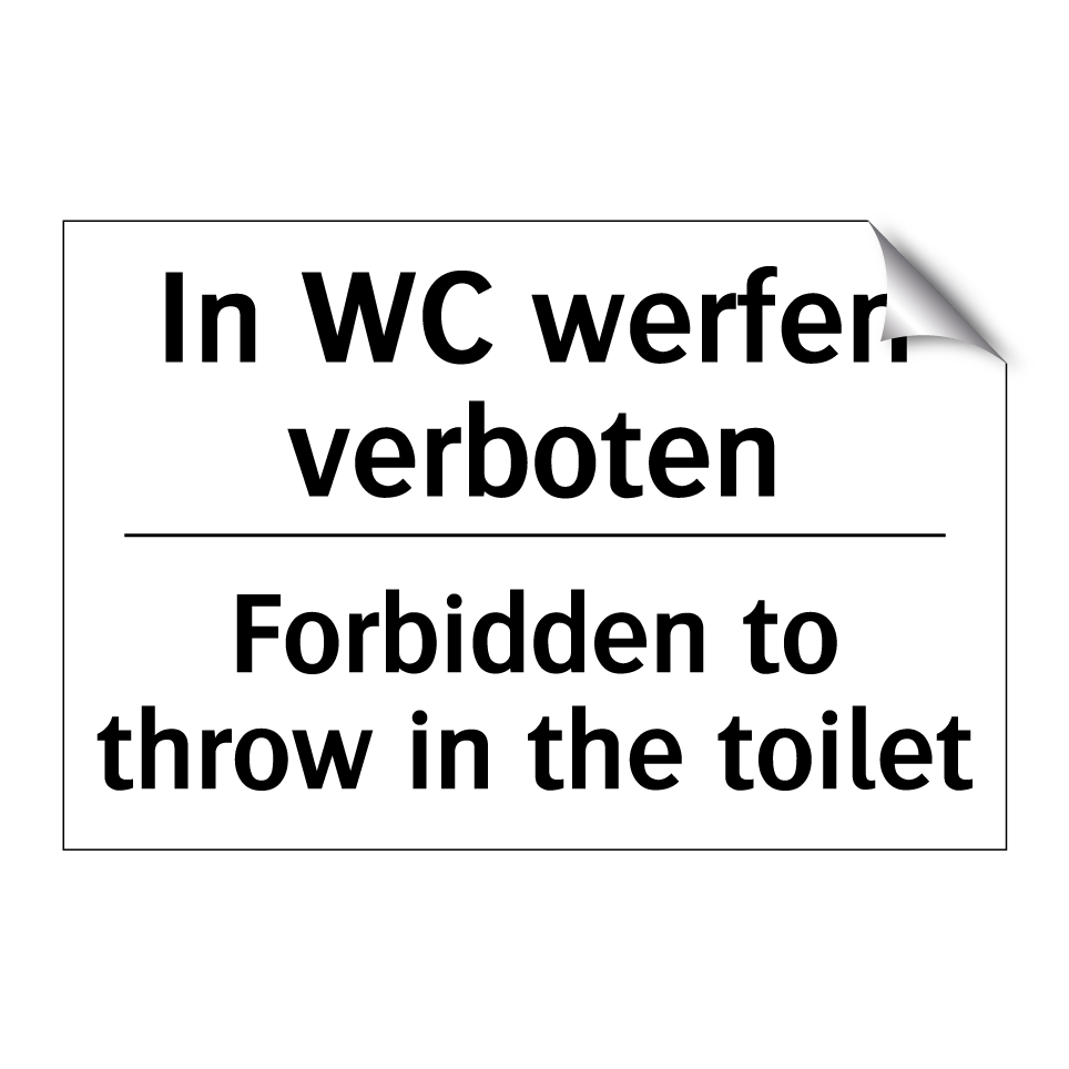 Zweisprachiges Verbotsschild mit deutschem Text In WC werfen verboten und englischem Text Forbidden to throw in the toilet