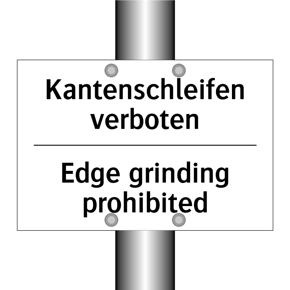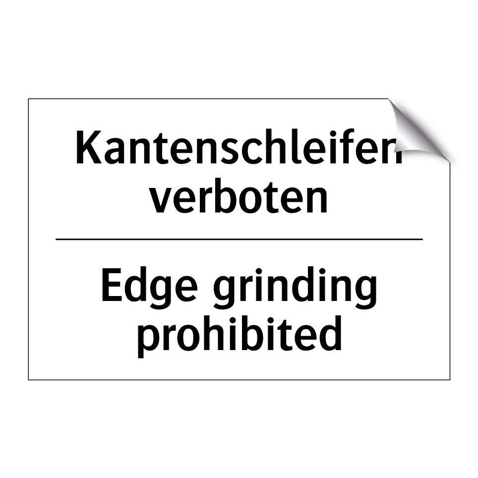 Zweisprachiges Verbotsschild mit deutschem Text Kantenschleifen verboten und englischem Text Edge grinding prohibited
