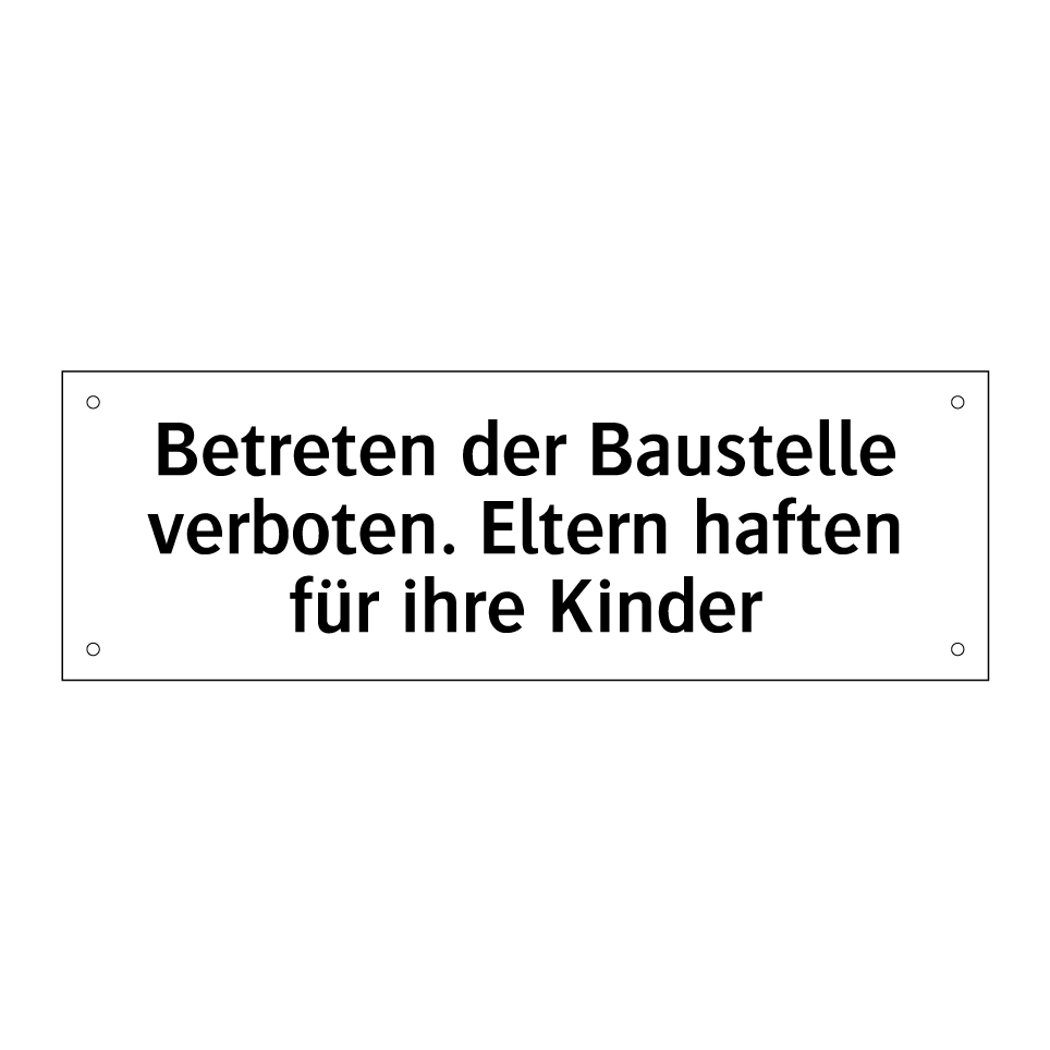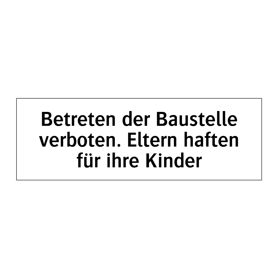 Verbotsschild mit dem Text Betreten der Baustelle verboten. Eltern haften für ihre Kinder