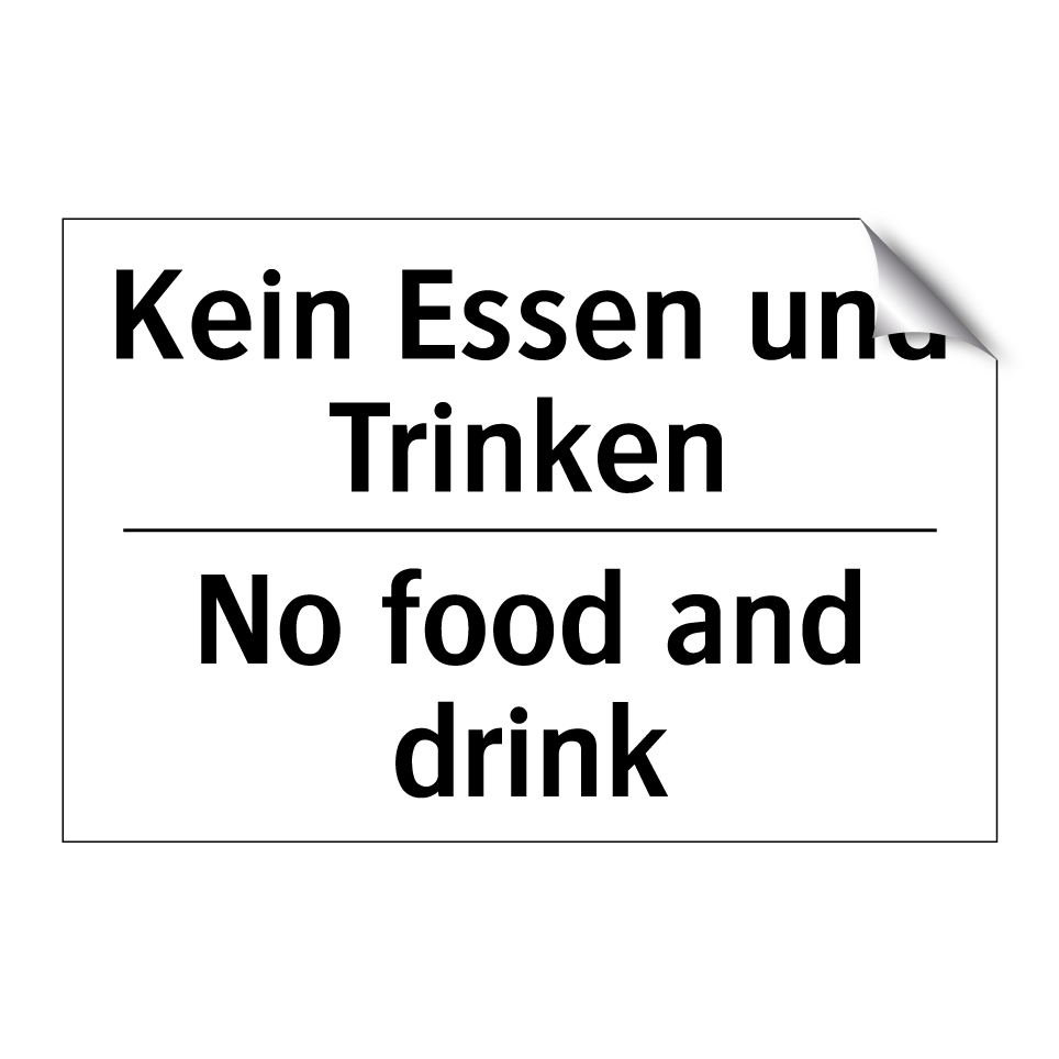 Zweisprachiges Verbotsschild mit deutschem Text Kein Essen und Trinken und englischem Text No food and drink