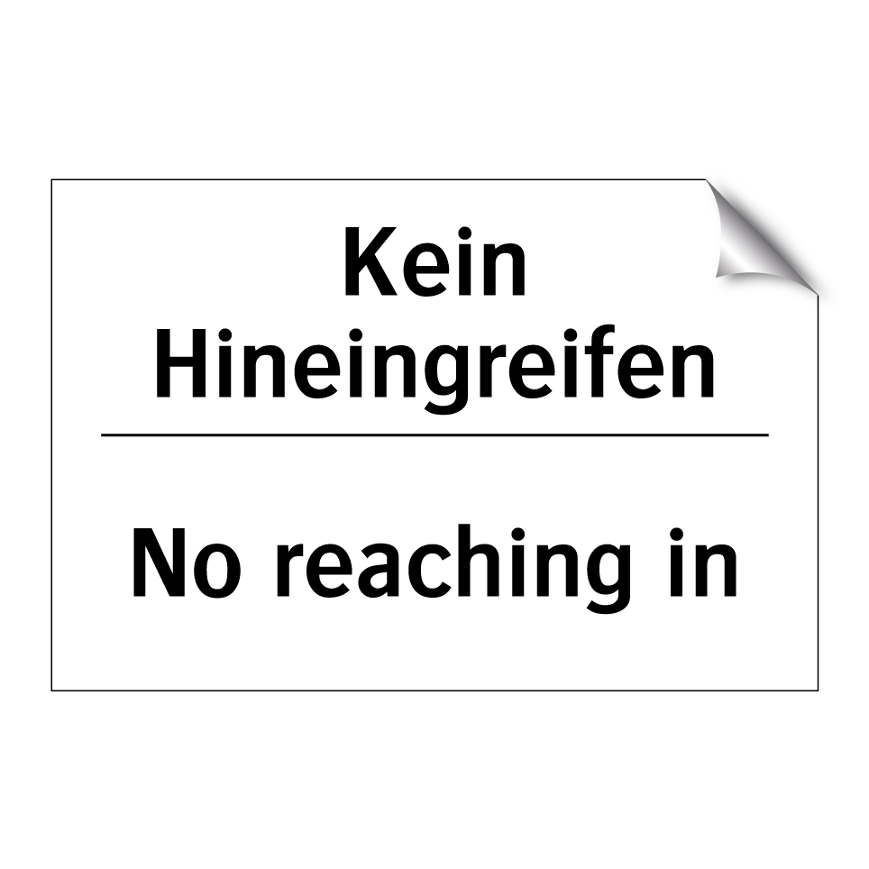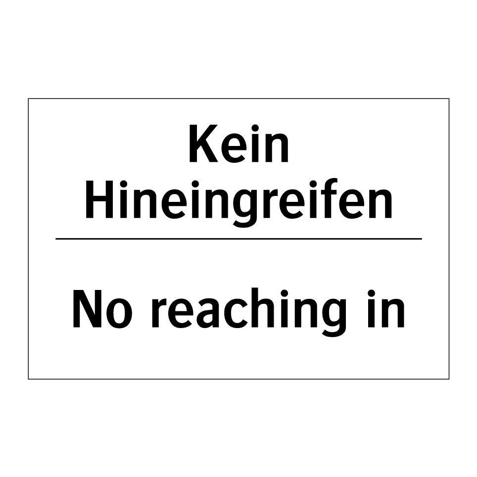 Zweisprachiges Verbotsschild mit deutschem Text Kein Hineingreifen und englischem Text No reaching in