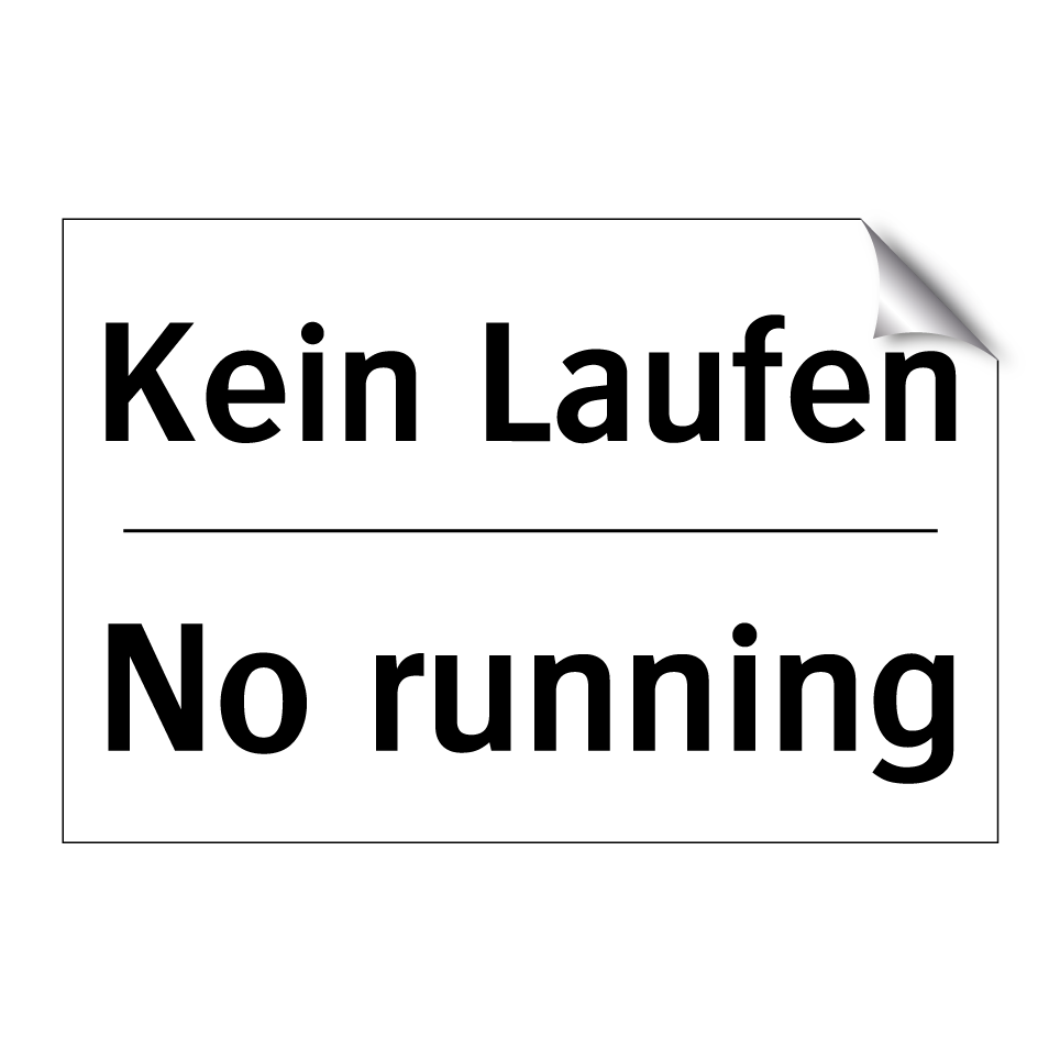 Zweisprachiges Verbotsschild mit deutschem Text Kein Laufen und englischem Text No running