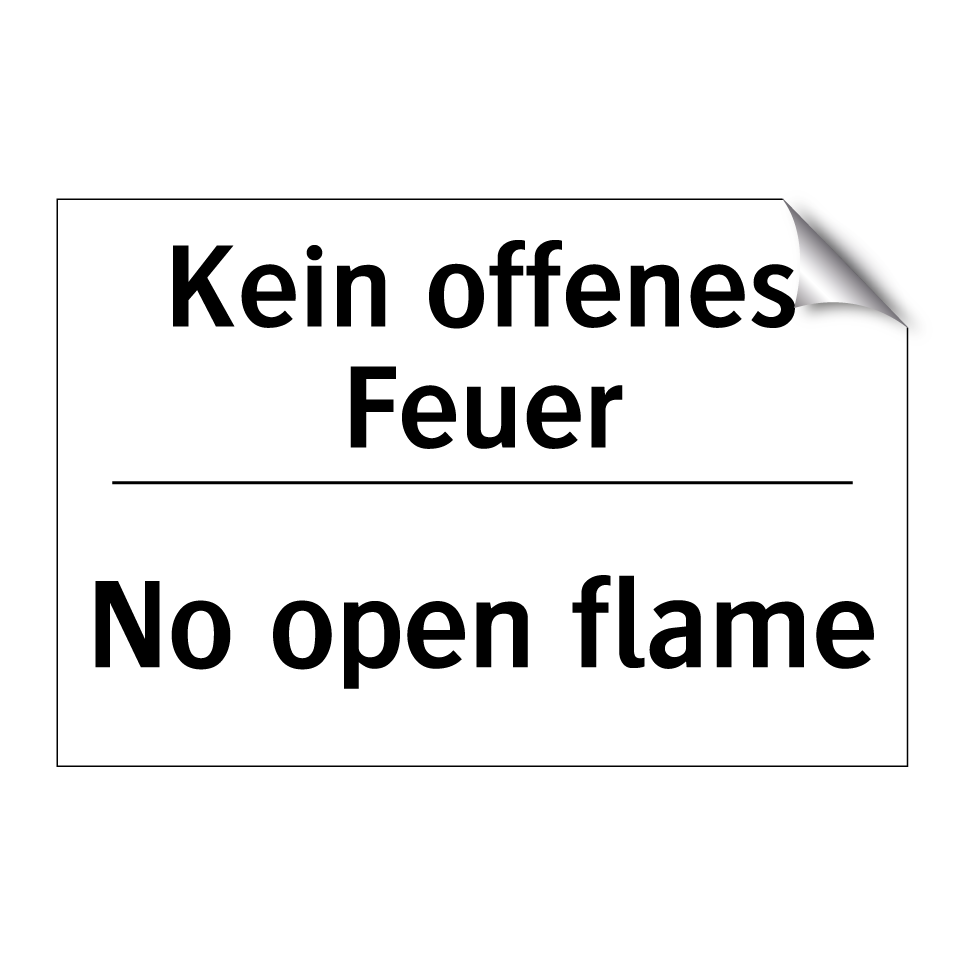 Zweisprachiges Verbotsschild mit deutschem Text Kein offenes Feuer und englischem Text No open flame