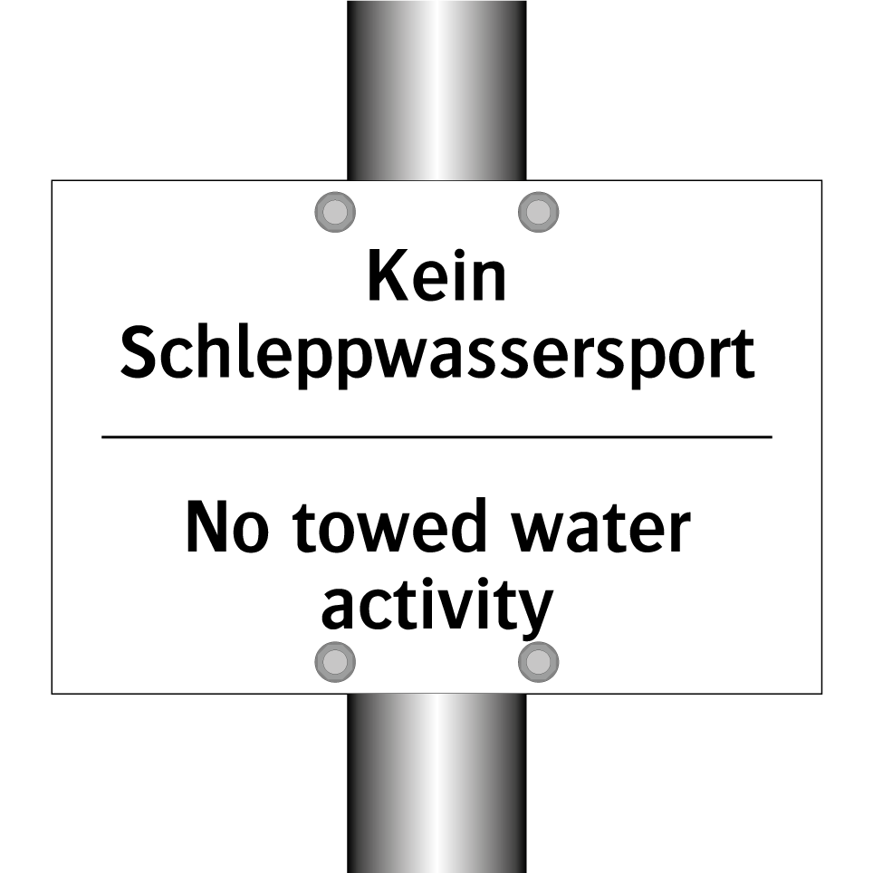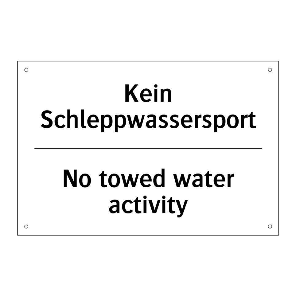 Zweisprachiges Verbotsschild mit deutschem Text Kein Schleppwassersport und englischem Text No towed water activity