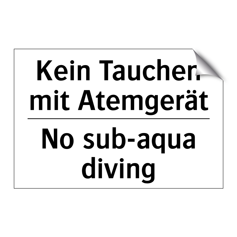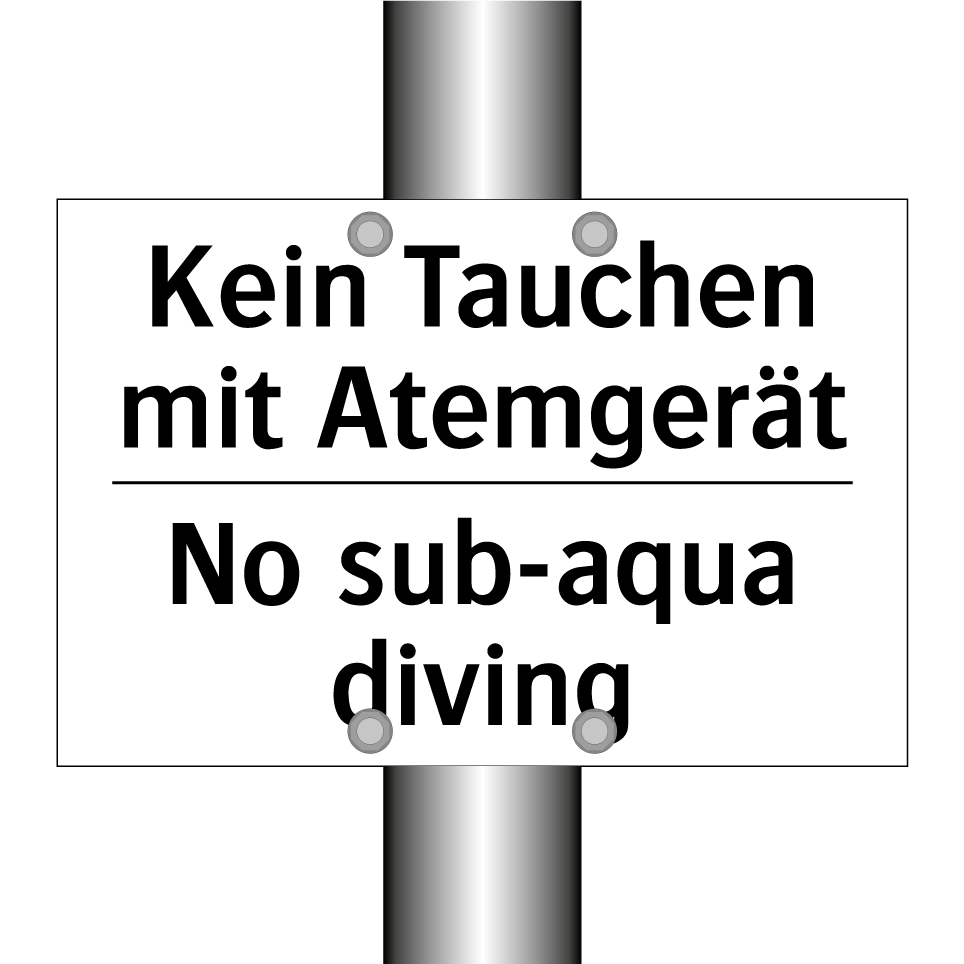 Zweisprachiges Verbotsschild mit deutschem Text Kein Tauchen mit Atemgerät und englischem Text No sub-aqua diving