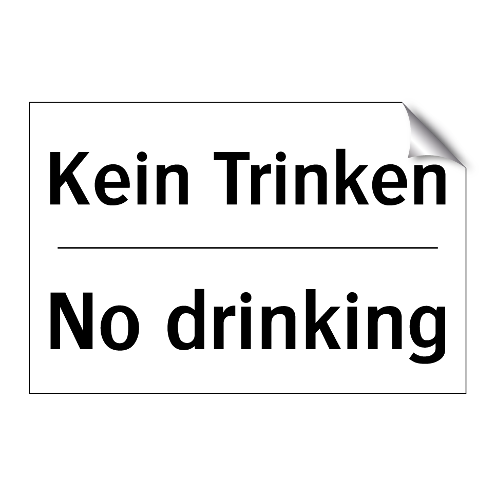 Zweisprachiges Verbotsschild mit deutschem Text Kein Trinken und englischem Text No drinking