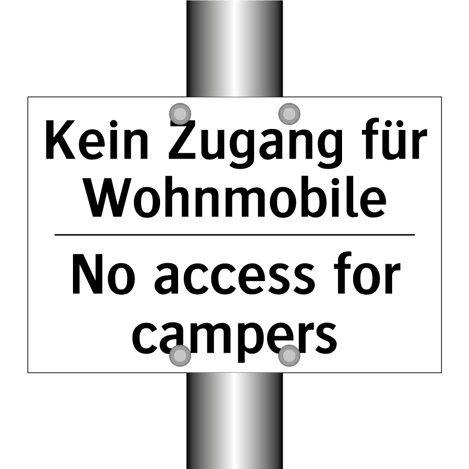 Zweisprachiges Verbotsschild mit deutschem Text Kein Zugang für Wohnmobile und englischem Text No access for campers