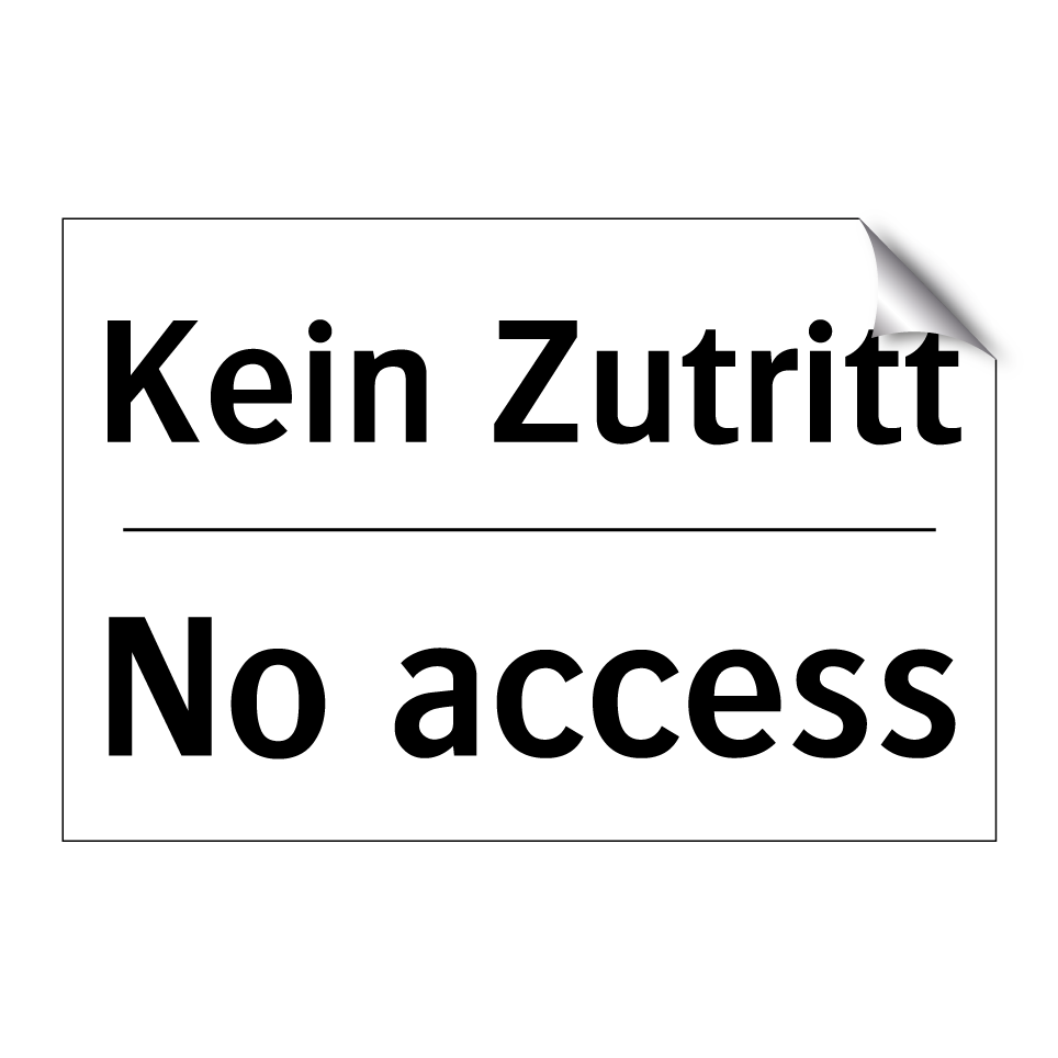 Zweisprachiges Verbotsschild mit deutschem Text Kein Zutritt und englischem Text No access