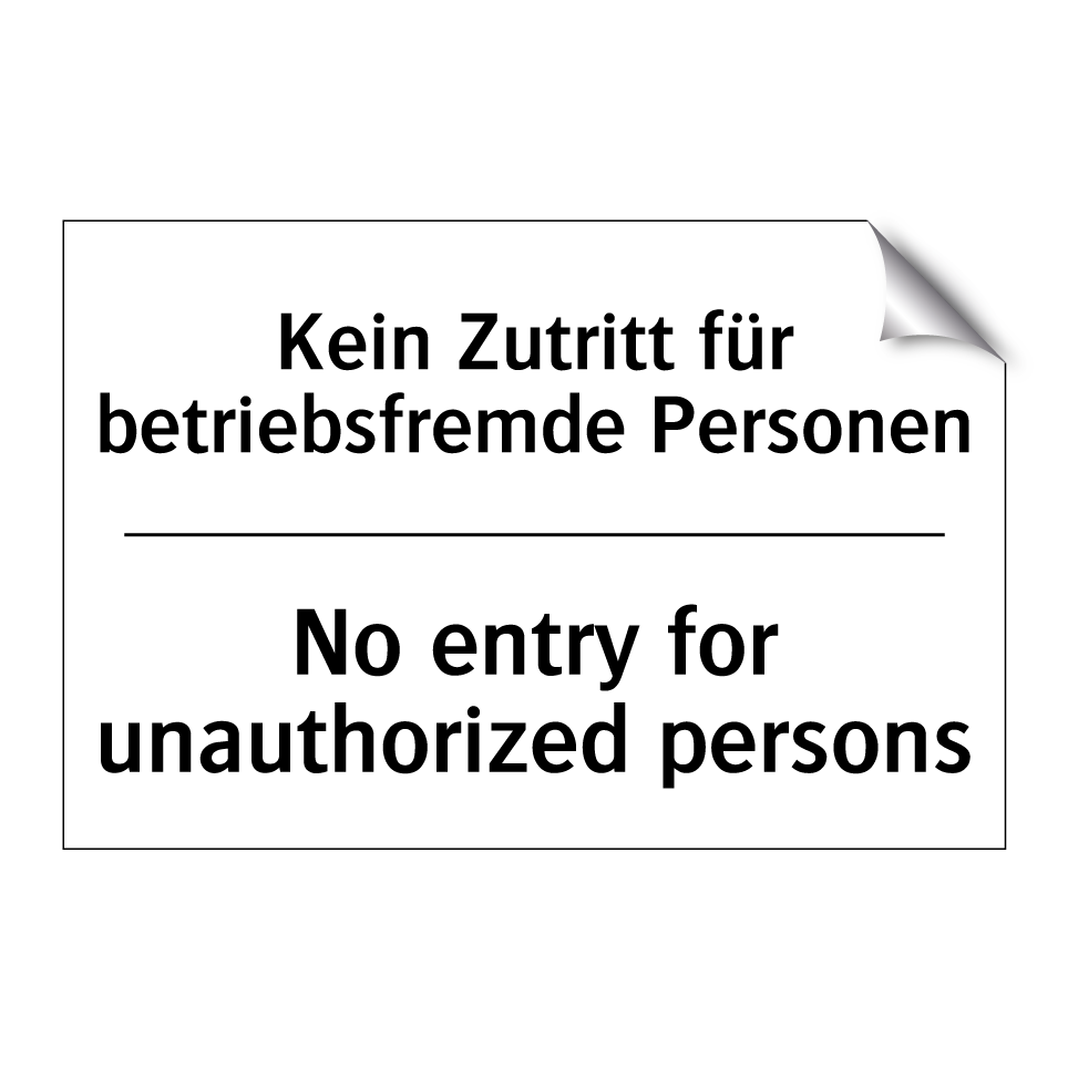 Zweisprachiges Verbotsschild mit deutschem Text Kein Zutritt für betriebsfremde Personen und englischem Text No entry for unauthorized persons