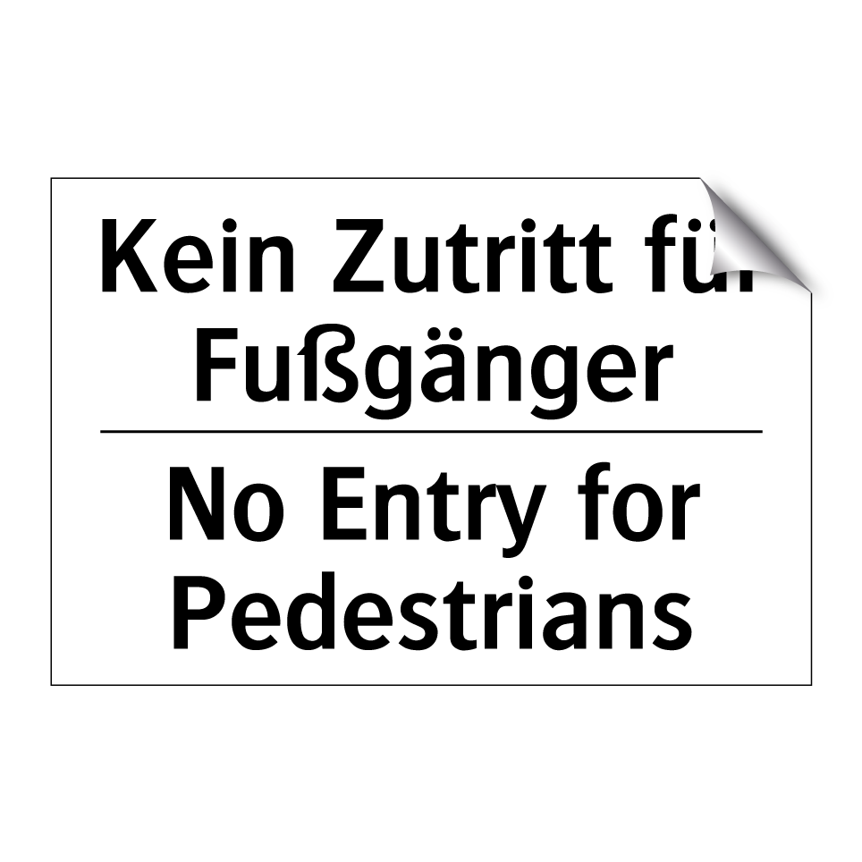 Zweisprachiges Verbotsschild mit deutschem Text Kein Zutritt für Fußgänger und englischem Text No Entry for Pedestrians