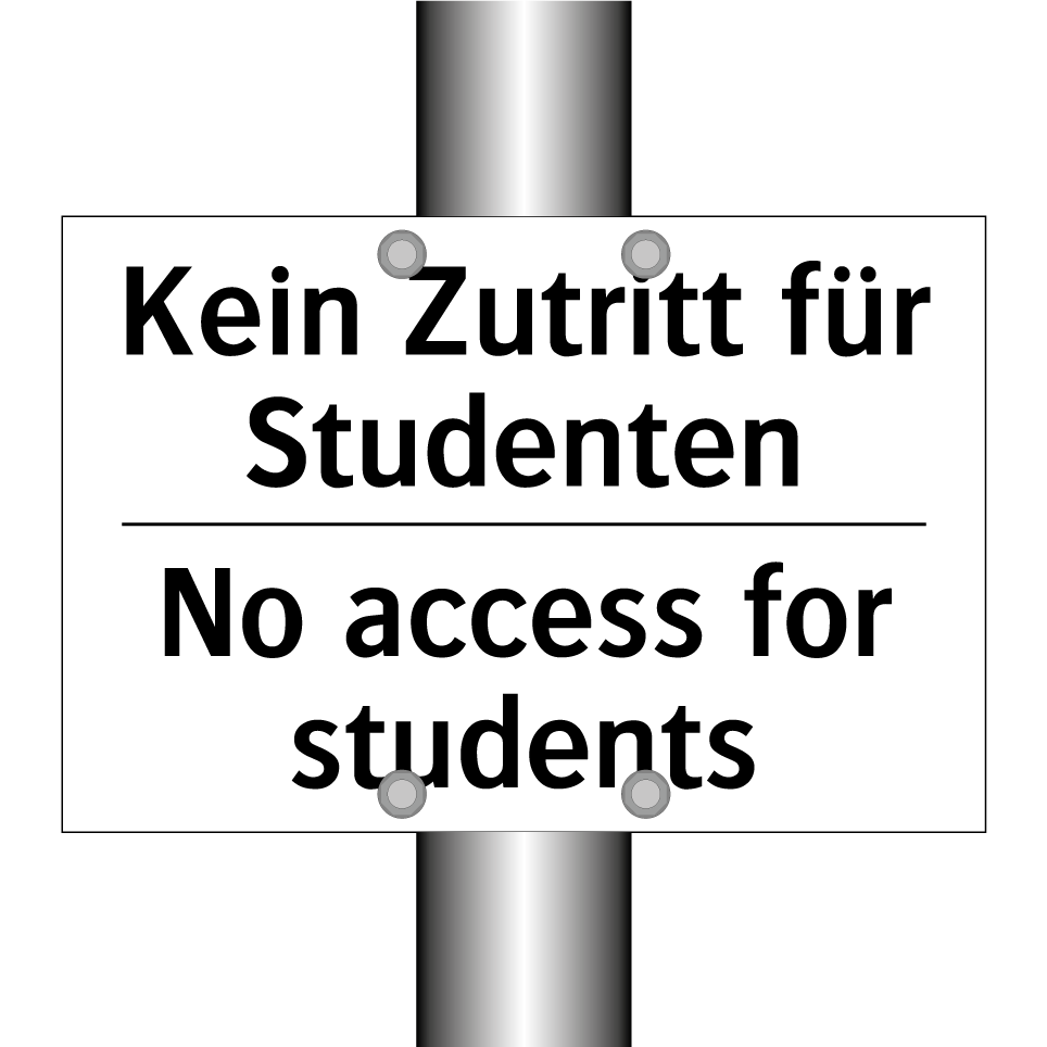 Zweisprachiges Verbotsschild mit deutschem Text Kein Zutritt für Studenten und englischem Text No access for students