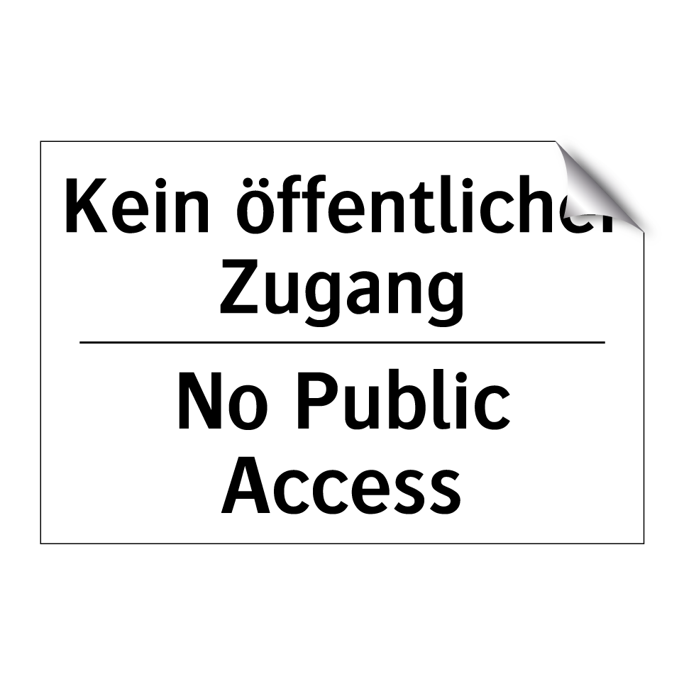Zweisprachiges Verbotsschild mit deutschem Text Kein öffentlicher Zugang und englischem Text No Public Access