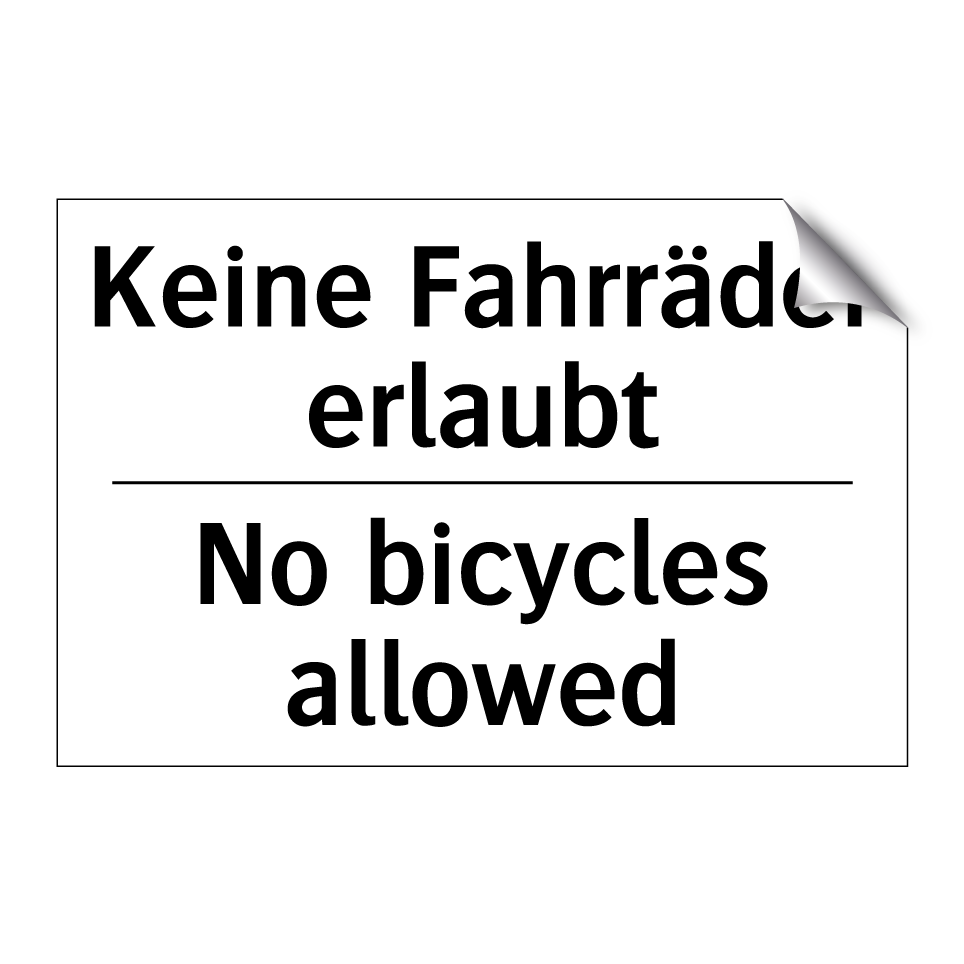 Zweisprachiges Verbotsschild mit deutschem Text Keine Fahrräder erlaubt und englischem Text No bicycles allowed