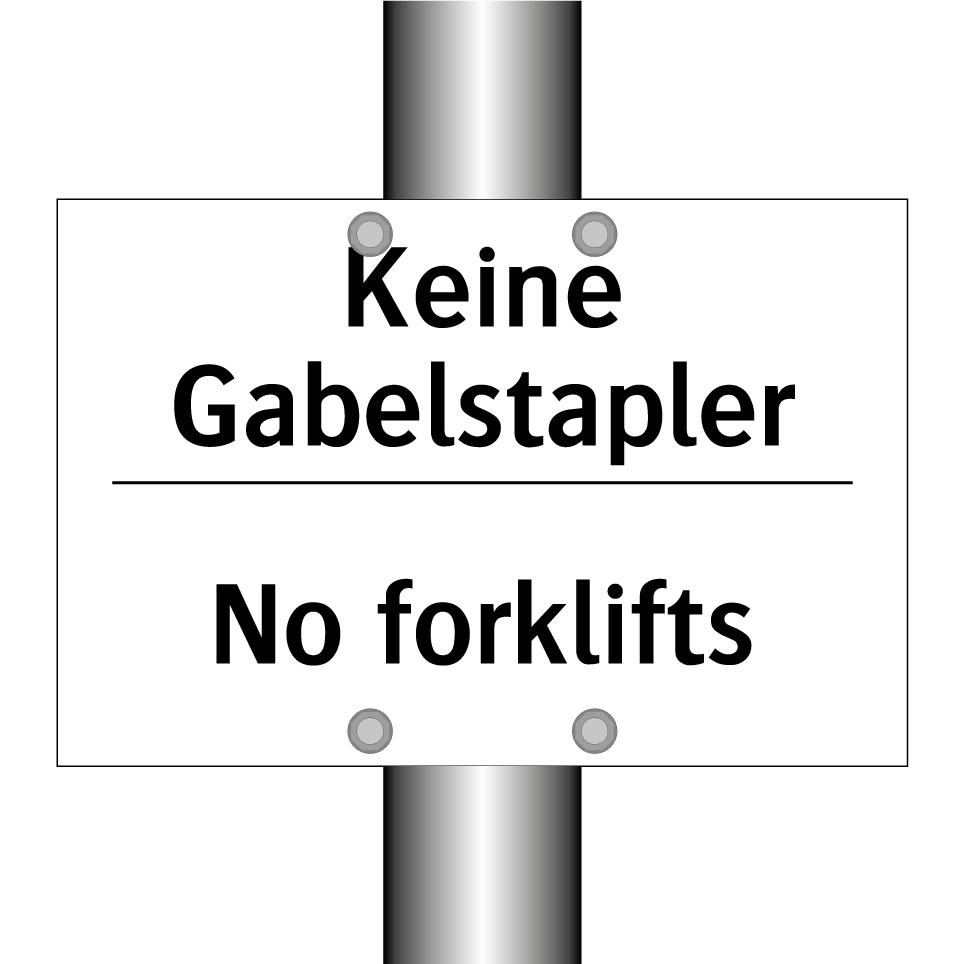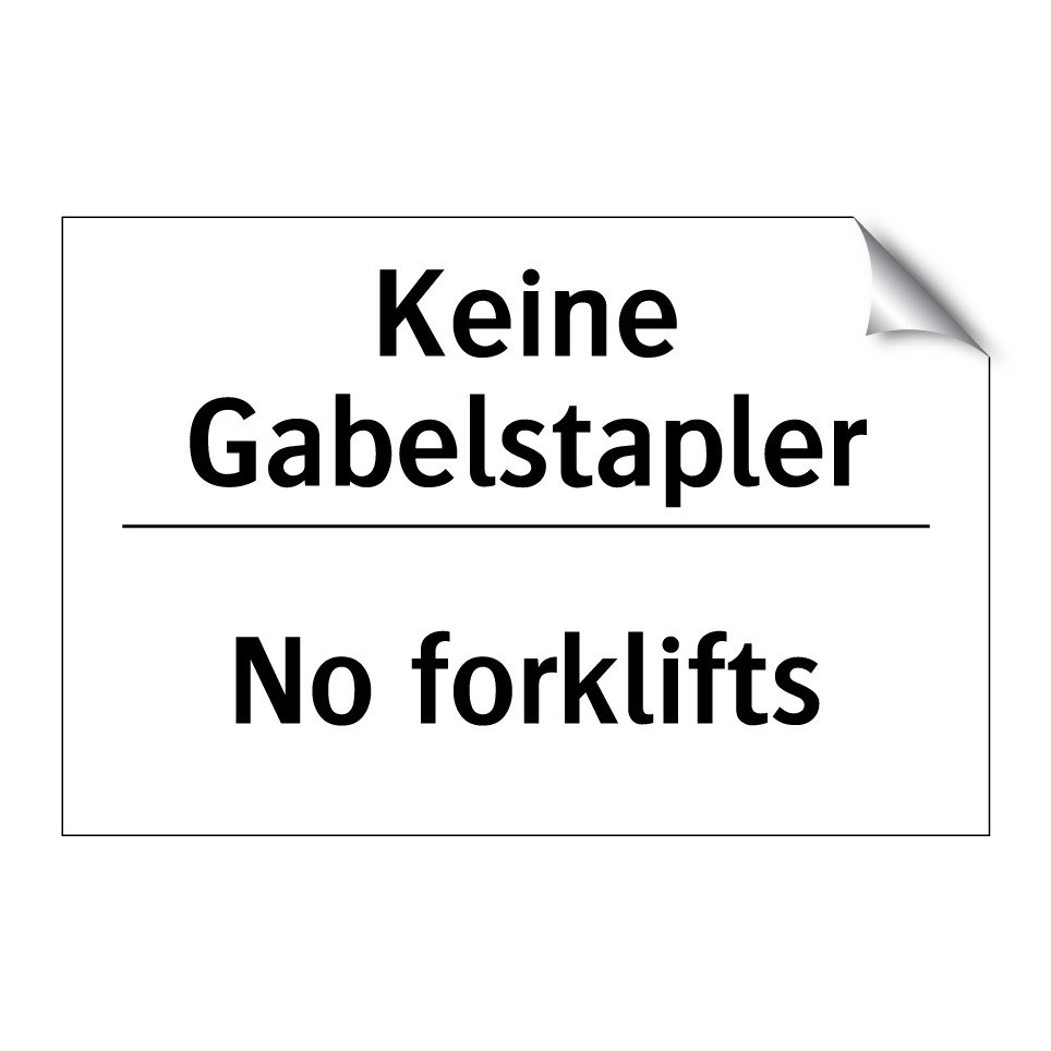 Zweisprachiges Verbotsschild mit deutschem Text Keine Gabelstapler und englischem Text No forklifts