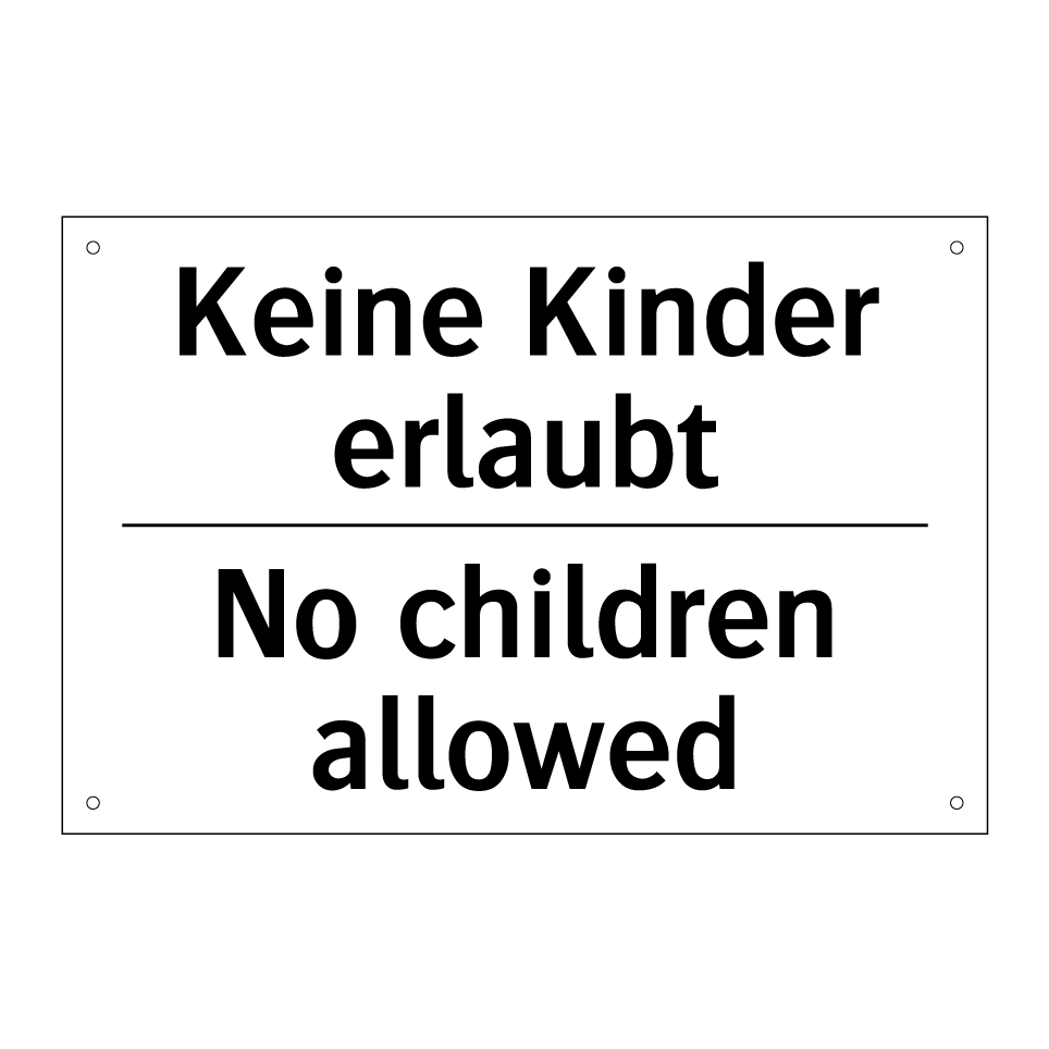 Zweisprachiges Verbotsschild mit deutschem Text Keine Kinder erlaubt und englischem Text No children allowed