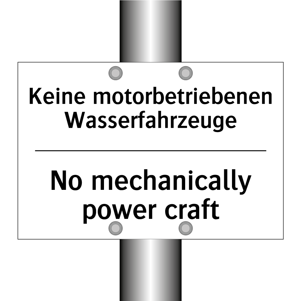 Zweisprachiges Verbotsschild mit deutschem Text Keine motorbetriebenen Wasserfahrzeuge und englischem Text No mechanically power craft