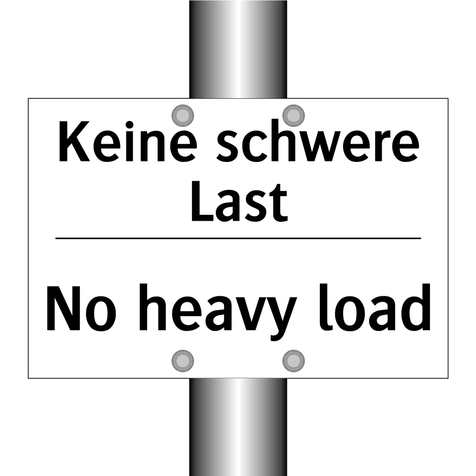 Zweisprachiges Verbotsschild mit deutschem Text Keine schwere Last und englischem Text No heavy load