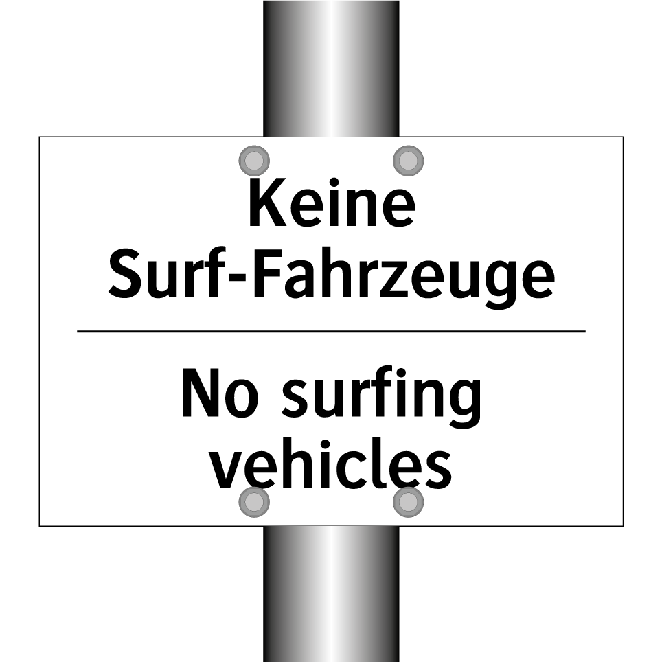 Zweisprachiges Verbotsschild mit deutschem Text Keine Surf-Fahrzeuge und englischem Text No surfing vehicles