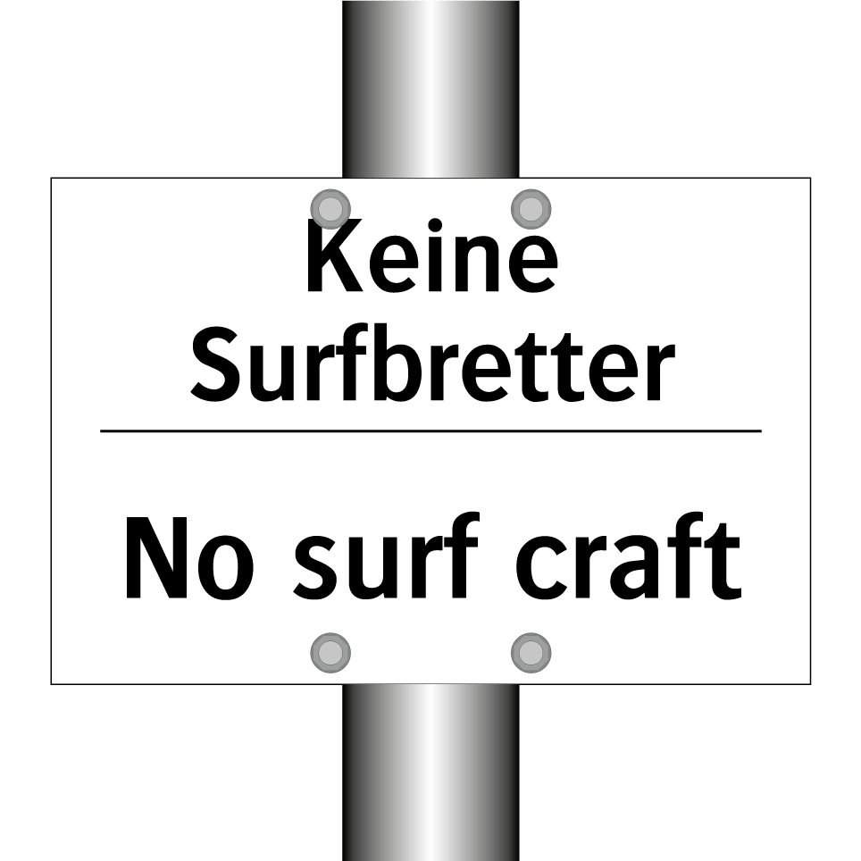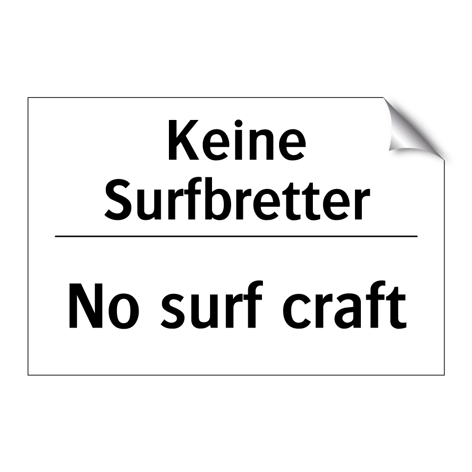 Zweisprachiges Verbotsschild mit deutschem Text Keine Surfbretter und englischem Text No surf craft