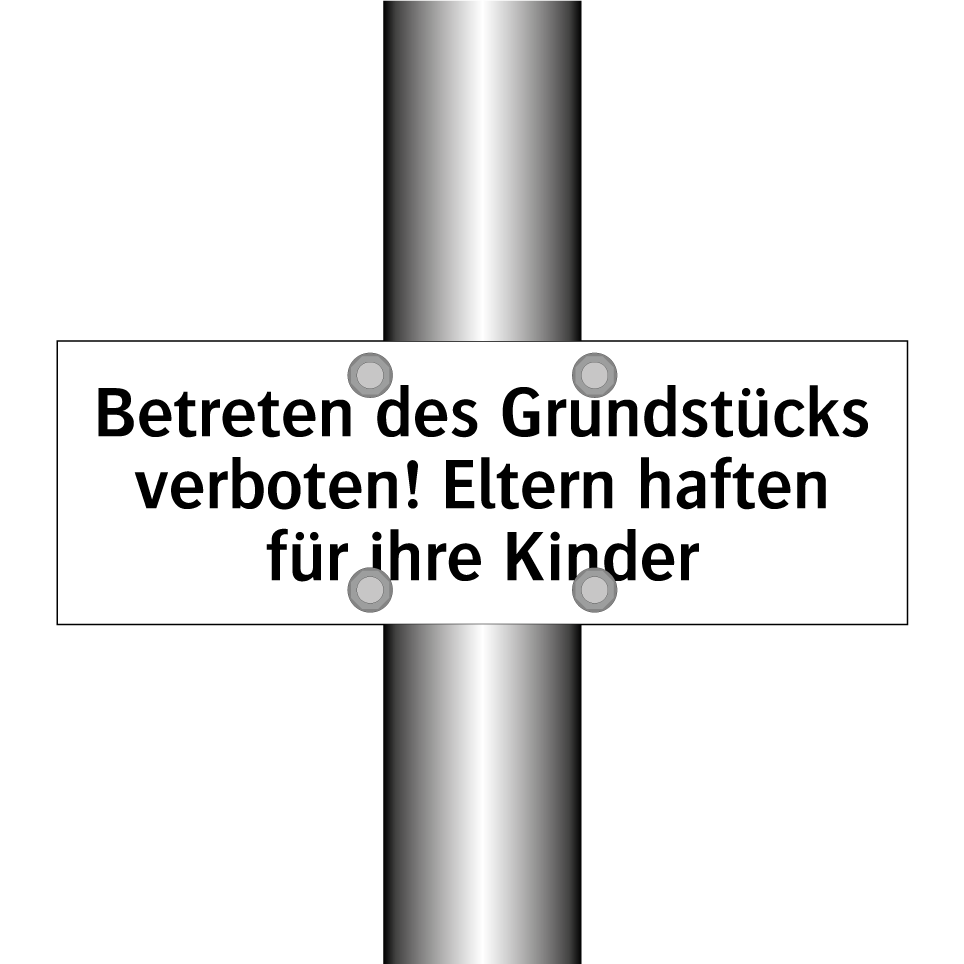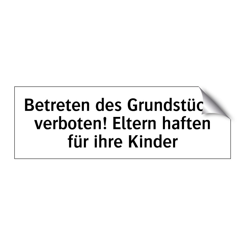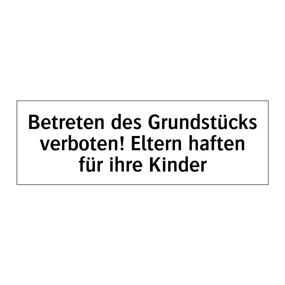 Verbotsschild mit dem Text Betreten des Grundstücks verboten! Eltern haften für ihre Kinder